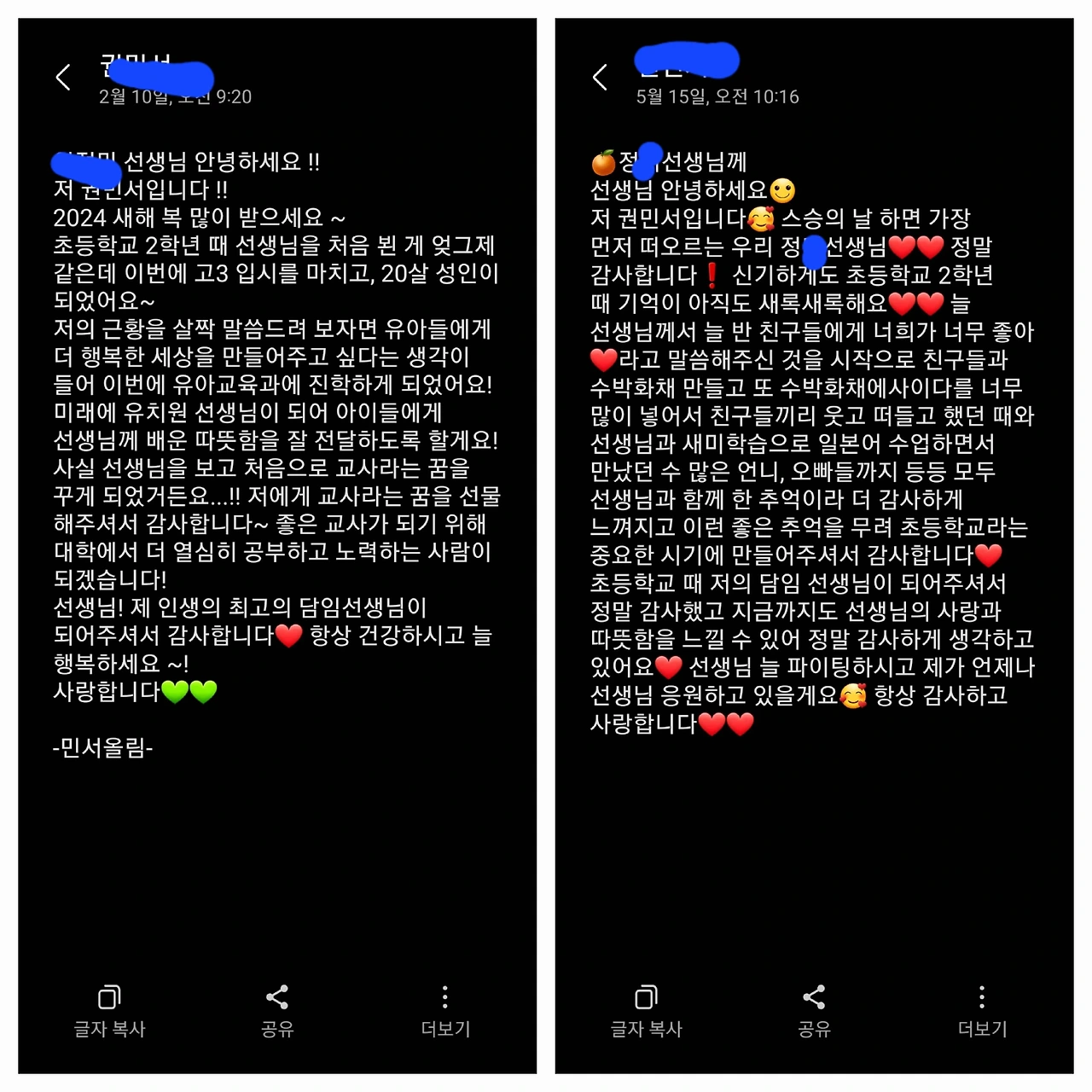 까치 까치설날 아침, 문득 날아든 문자 하나. 10년 전에 초등학교 2학년이었던 민서. 9살 꼬마였던 민서가 고3 입시를 마치고 스무 살 성인이 되어 유아교육과에 입학한다는 반가운 소식. 그녀의 기억 속에 내가 '사랑과 따듯함'이라니 다행이다. 쓸데없이 또 눈가가 촉촉해져서 기억의 파편 속을 헤맨다. 그러다 지난 스승의 날 그녀의 문자도 찾아보았다. '선생님께서 늘 반 친구들에게 너희가 너무 좋아라고 말씀해 주신 것을 시작으로 친구들과 수박화채를 만들고...'라는 문장에 머물며 안도한다. '아! 그때 그랬구나.' '다행이다. 사랑이 많았구나! 다행이다!' 내 기억 속에 수박화채는 까마득히 없는데 누군가의 기억으로 내 기억이 더 다채로워졌다. 지금은 없어진 '새미학습 일본어 공부'도 기억 속에서 춤춘다. 저녁에 화상으로 만났던 일본어수업반 아이들. 엄마가 일본인인 아이, 일본만화에 관심이 많은 아이, 민서처럼 내가 하는 일이면 무조건 참여하는 아이들까지. 그렇게 2년 남짓 화상수업이 이어졌었나...