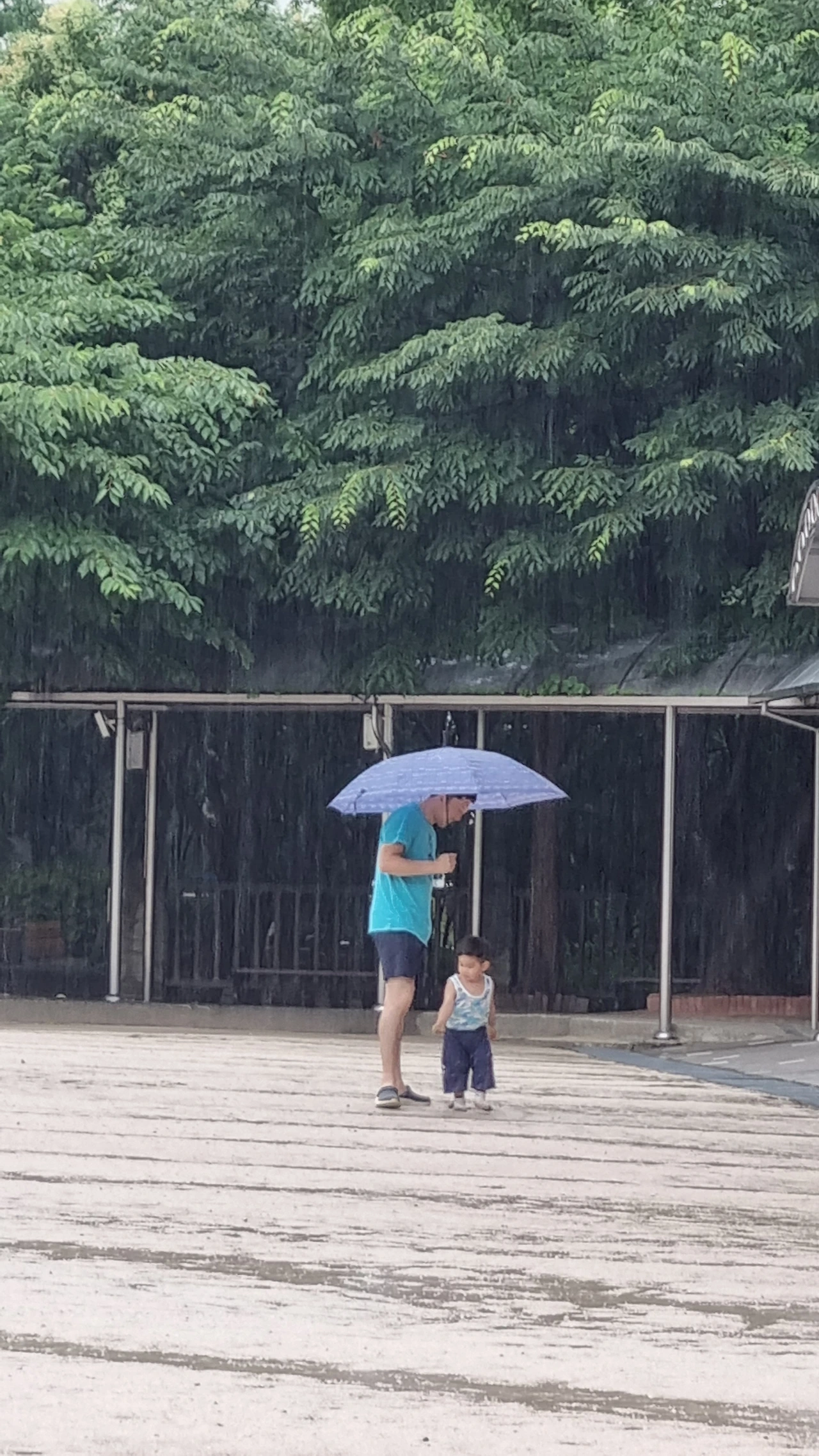 멀리 아빠와 아이의 모습이 눈에 들어왔습니다. 그 모습이 너무나 귀엽고 사랑스러워 카메라에 담아 보았습니다. 아이는 비가 신기하고 촉촉하고 부드러운 흙놀이에 신이 납니다. 아빠는 묵묵히 아이의 우산이 됩니다. 맞아요. 어른은 아이의 우산이 되어야지요. 아이가 세상을 실컷 탐험할 수 있도록 말입니다.
