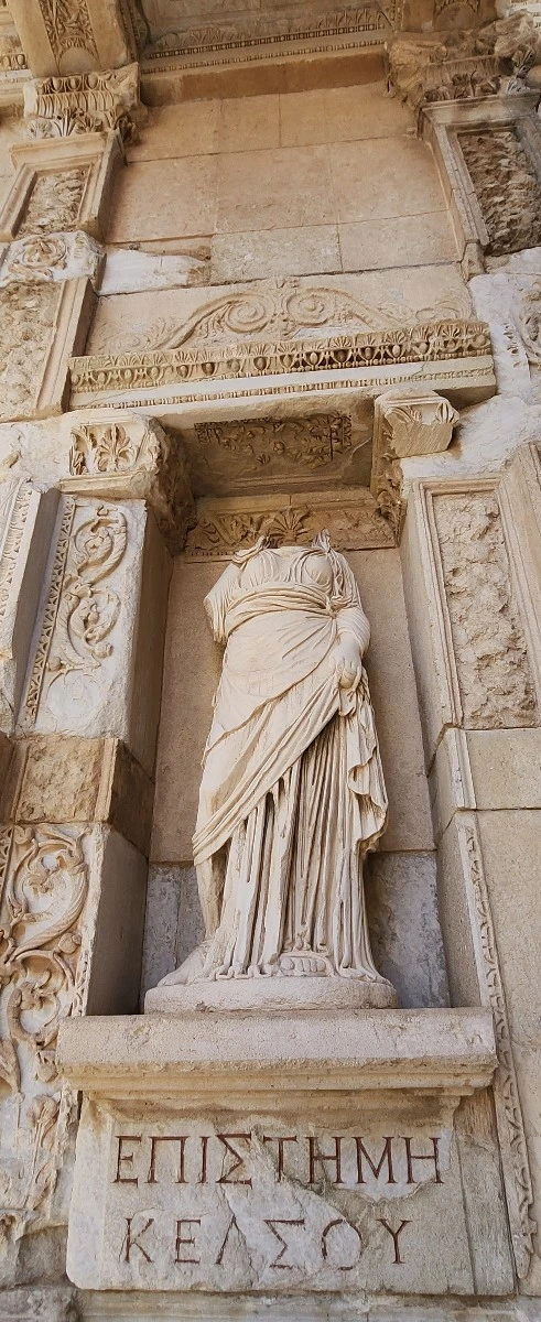 눈여겨볼 포인트가 많지만(하드리아누스 황제 기념 신전, 수세식 공중 화장실, 분수대, 그리스 신화 조각들, 하렘, 주거지 등) 독보적인 자태로 사람들을 불러 모으는 곳은 '셀수스 도서관'이다. 135년 아시아의 주 총독으로 에페소에 부임한 율리우스 아퀼라가 70세에 죽은 그의 아버지 셀수스를 기리기 위해 무덤 위에 세운 도서관이다. 정말 아름다운 건축물이다. 이곳에 양피로 만든 1만 2천여 권의 장서가 보관되어 있었다니 그저 놀라울 따름이다. 기록하고 도서관에 보관했으니, 설계도를 보며 원형에 가깝게 도시를 복원할 수 있는 것이다. 셀수스 도서관을 장식하고 있는 4명의 여신상은 지혜, 운명, 학문, 미덕을 상징한다는 설명이다. 아름다움과 문명을 이끈 철학을 모두 담은 셀수스 도서관은 정말로 여유를 갖고 머물며 느끼고 싶었지만 패키지 여행자인 나에게 시간은 너무나 짧게 허락되었다.