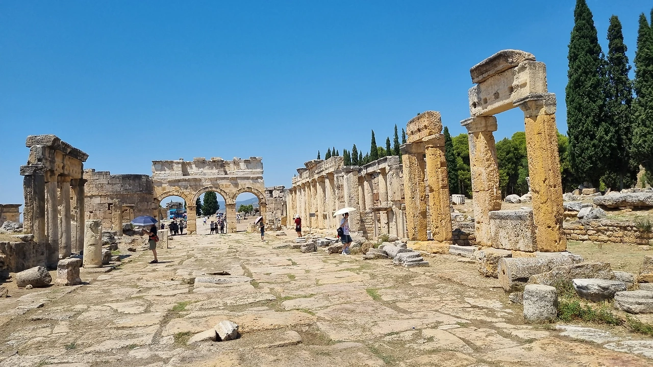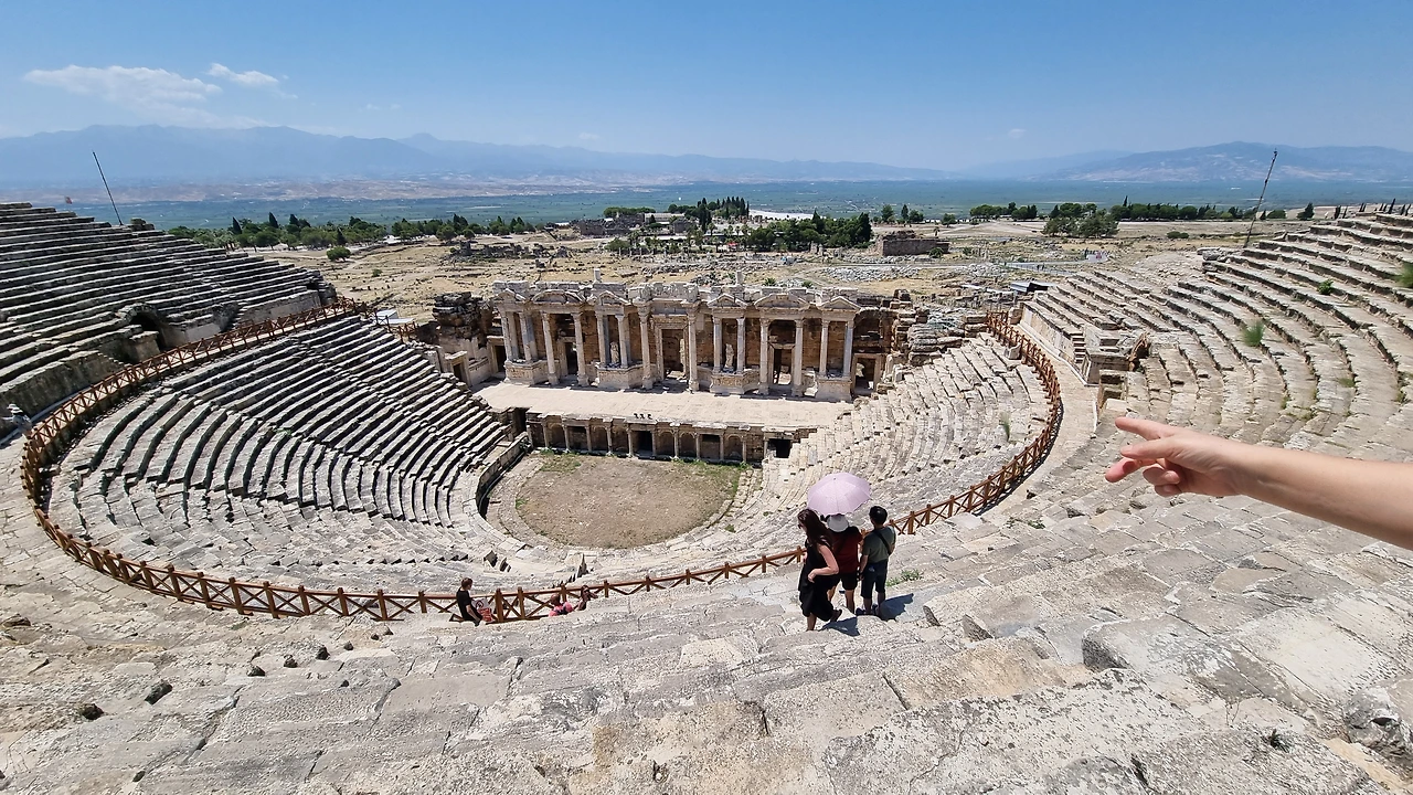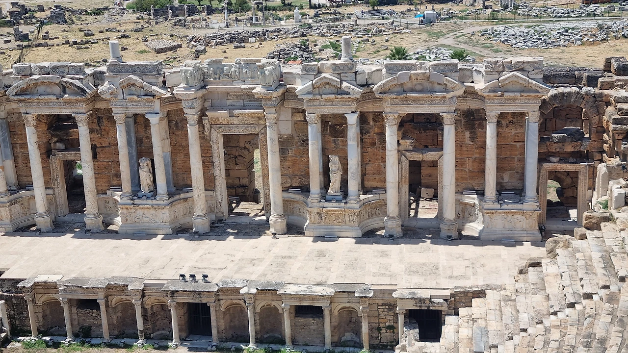 검색해 보니 페르가몬의 왕 에우메네스가 기원전 190년 경에 건설하기 시작한 도시 유적지로 로마와 비잔틴 시대에 가장 번성하였다. 12세기 셀주크 튀르크 시대에 도시 이름이 히에라폴리스에서 지금의 파묵칼레로 바뀌었다. 1354년 대지진으로 도시가 사라졌지만, 1887년 독일의 고고학자들이 이곳을 발굴하면서 세상에 알려졌다.