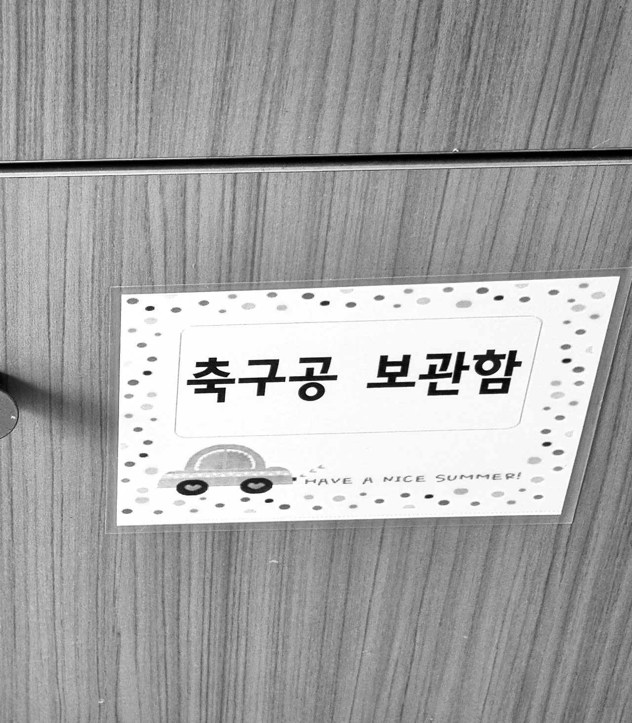 5교시 시작 준비종이 울렸다. 축구하던 아이들이 땀에 흠뻑 젖은 채 현관으로 들어왔다. 나는 자율 축구공 보관함을 가리키며 말했다.