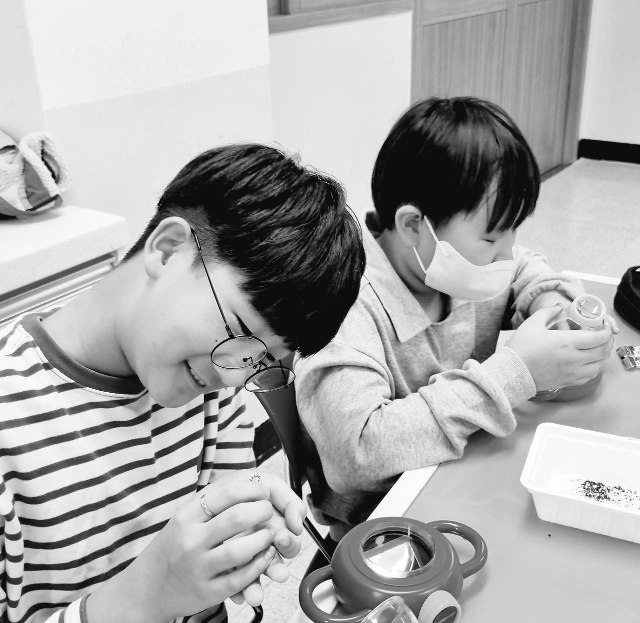 애벌레를 처음으로 만난 아이들은 세상 신기한 표정이다. 사랑스러워 죽겠다는 표정이다. 눈으로 보고 돋보기로도 살펴본다. 손바닥에 올려놓고 들여다 보고 또 들여다보며 교감한다. 기어가는 모습도 관찰하고 애벌레의 체온도 느껴본다. 어떤 아이들은 '너무 귀여워요' 연신 말한다. 꿈틀꿈틀 꼬물꼬물 애벌레가 어른인 나의 눈에는 징그럽기도 한데 아이들은 뭣이 그리 좋기만 할까. (나는 아이들의 이런 모습을 볼 때면 '아이들 마음에는 뭐가 있을까?' 궁금해진다. 동시에 아이들의 이런 모습이 나는 참 좋다.) 이름을 지어준다. 통통이, 포롱이, 꿈틀이, 퐁퐁이 등등. 내년 봄이면 애벌레는 장수풍뎅이로 탈바꿈할 테다. 6개월이 넘는 긴 기간 동안 아이들이 애벌레를 잘 보살피며 기다릴 수 있을지 궁금하다. 아이들을 만나면 종종 애벌레의 안부를 물어봐야겠다고 생각한다.