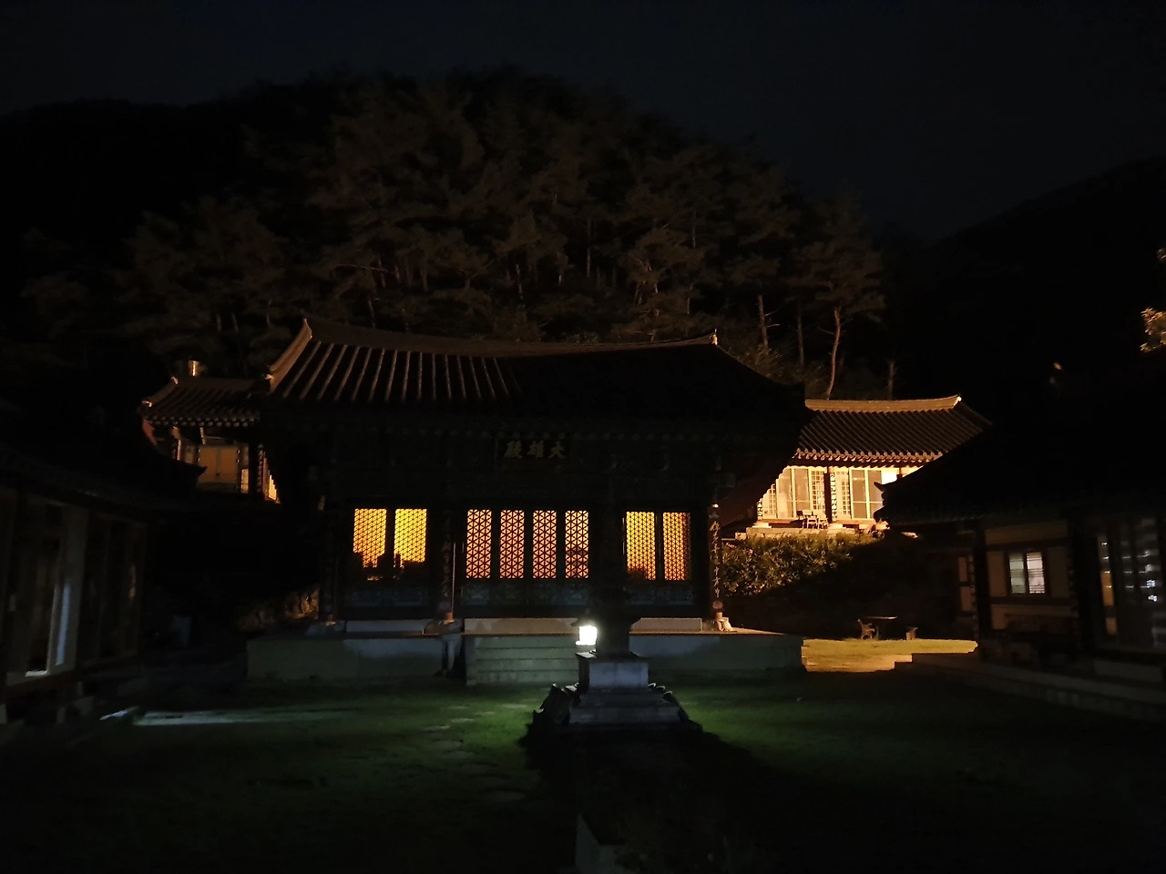 산사 대웅전 은은한 불빛이 낮과 다른 아름다움을 선물하고 있다.