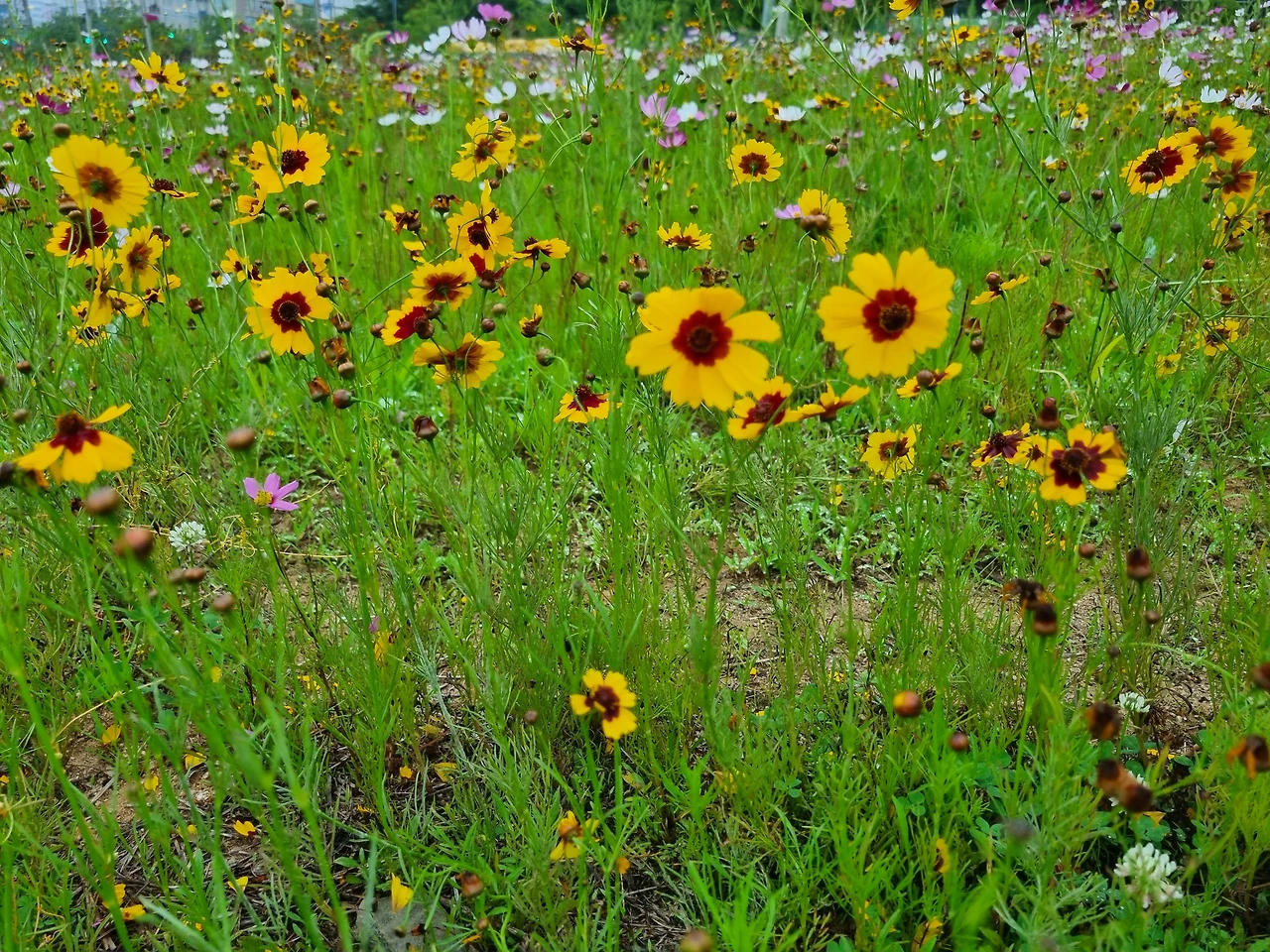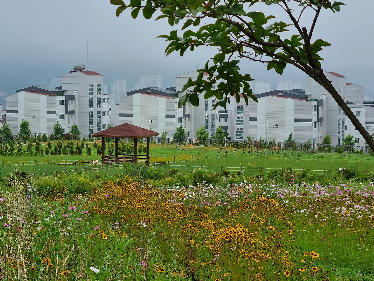 보슬보슬 장맛비 따라 꽃들이 바람에 따라