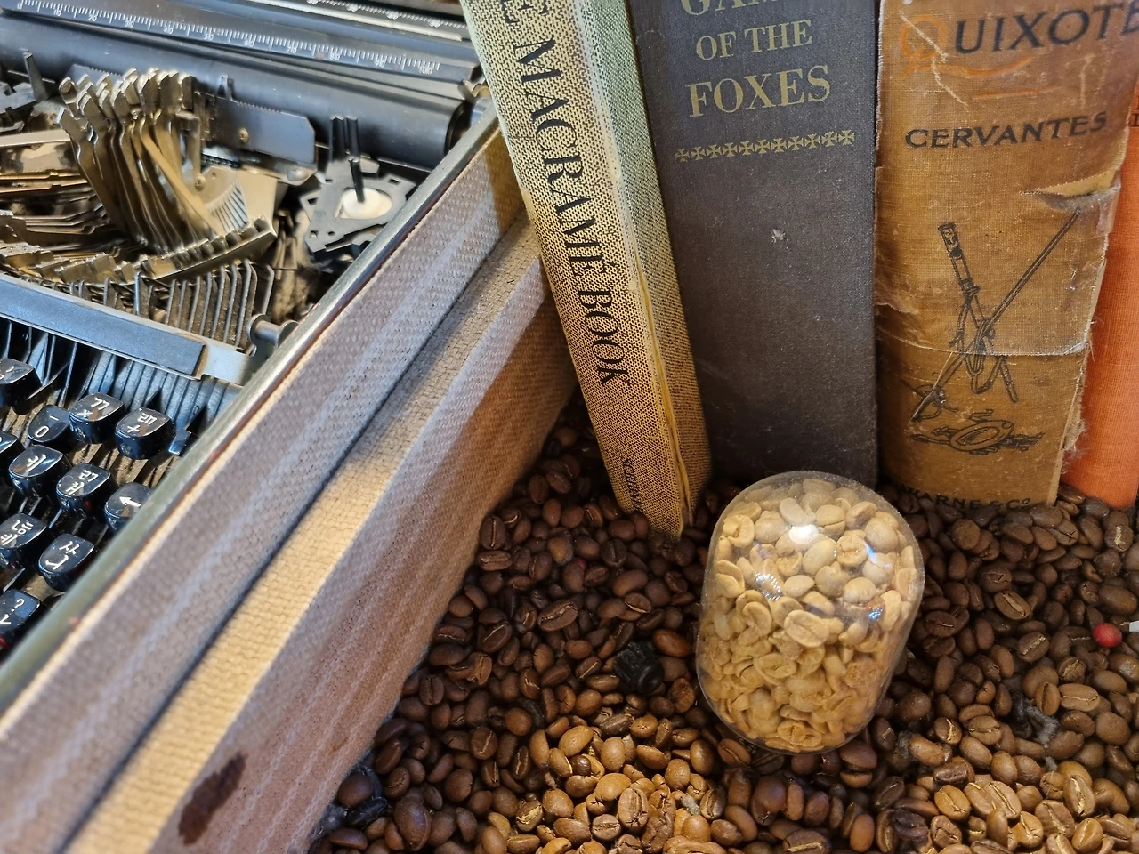 오늘은 카페 한 모퉁이에 전시된 오래된 물건들을 눈여겨보았다. 고서, 타자기, 알람시계, 인형, 카메라...... 그리고 볼수록 좋은 커피콩.