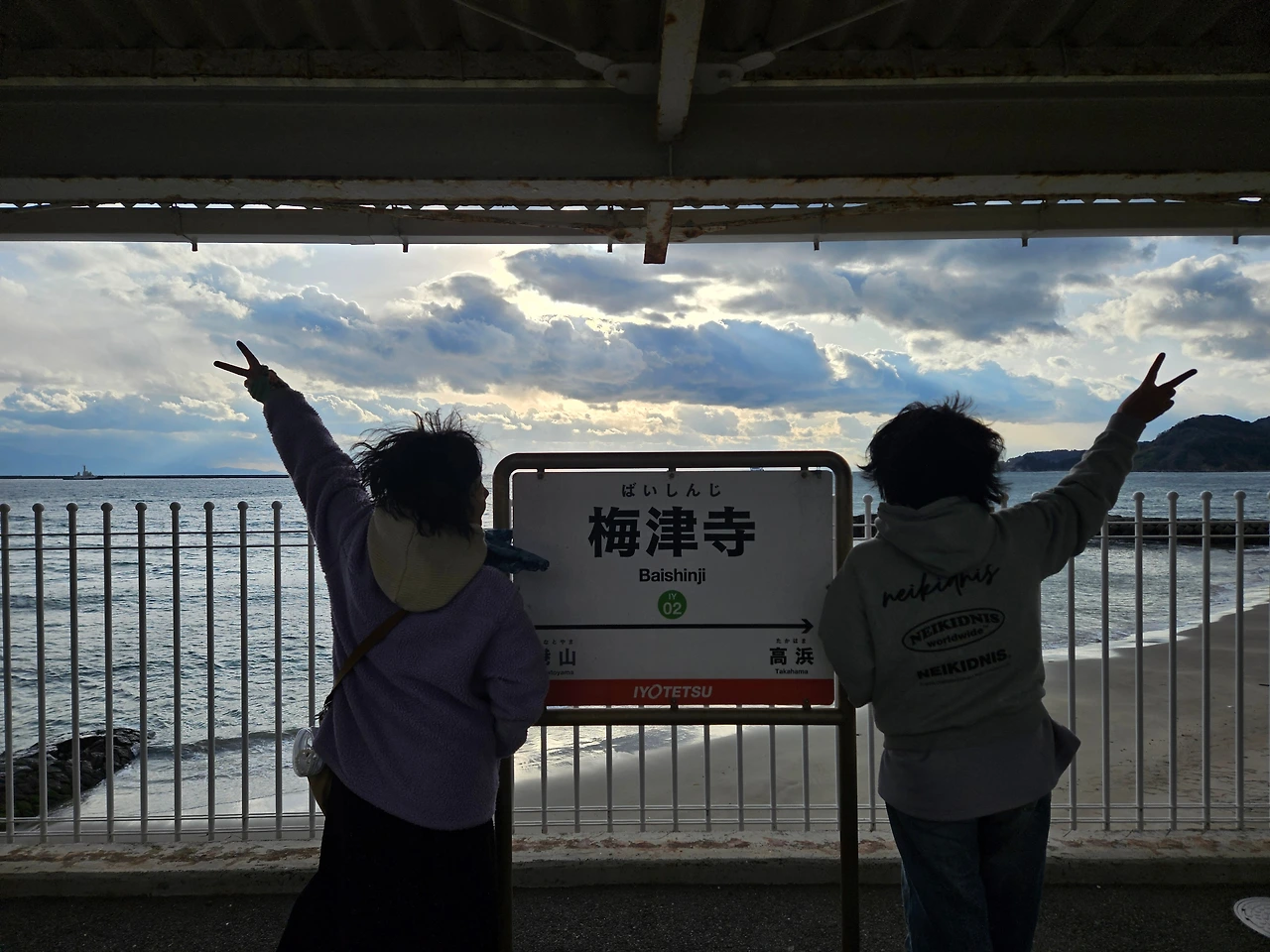 그리고 낚시공원 말고 간이역인 바이신지 역에 가서 일몰 보기(마침 운행을 재개한 노선이 있었고, 원래 거기로 했던 시모나다 역과 반대편에 덜 알려지긴 했지만 바다를 볼 수 있는 역이 또 한 군데 있었다)