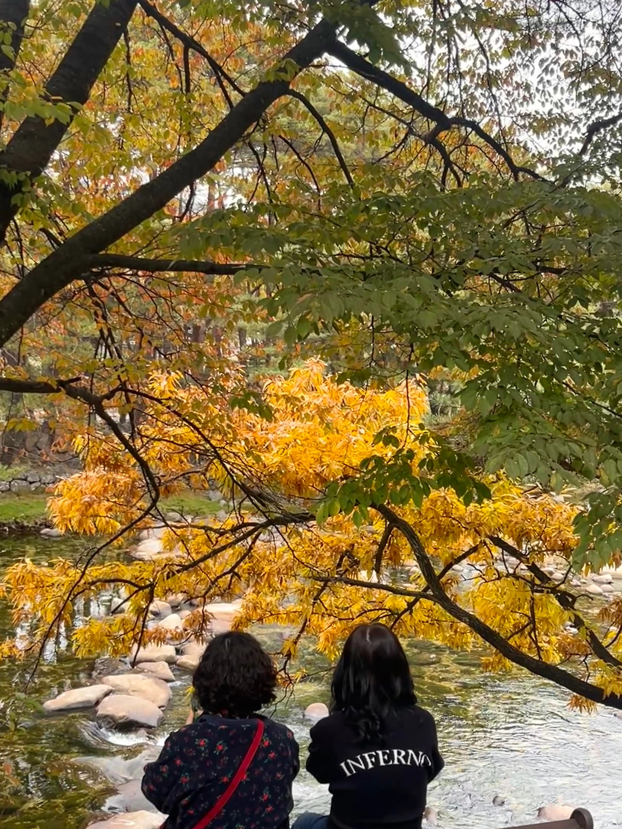 이불을 깔고 나란히 누워 수다를 떨다가 잠을 자고, 단풍이 예쁘게 든 풍경 안에서