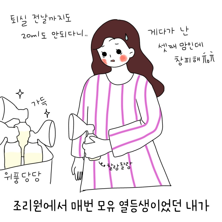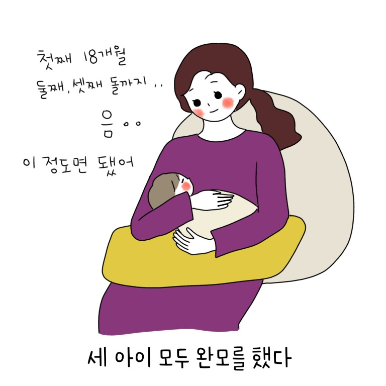 첫째 때 모유 수유하기 위해 정말 많이 고생했다. 조리원 퇴실 날까지 20ml도 채 안 되는 젖량으로 완모를 해보겠다며 5개월 간 아이를 붙잡고 씨름을 했다. 사실 100일쯤 아기가 젖병을 거부하여 모유수유를 택해야 하는 어쩔 수 없는 상황이기도 했다. 모유에 좋다는 정보를 찾아 아기가 잘 때마다 초록창을 헤매고 다녔다. 피곤함과 적은 젖량으로 오는 스트레스도 컸다. 다행히 둘째와 셋째 때는 첫째 때의 시행착오를 가지고 비교적 쉽게 완모를 했지만, 다시 돌아간다면 난 완모를 고집할 수 있을까.
