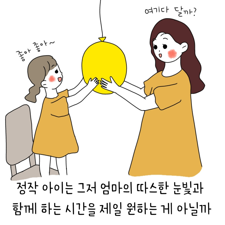 자연분만, 모유수유, 좀 더 크면 아이의 먹거리, 옷과 장난감, 책 등등. 아이에게 좋은 것만 주고픈 엄마의 마음을 어찌 더 설명하리. 그런데 아무리 좋은걸 준다한들 아이와 살 부대끼며 함께 하는 것만큼 좋은 것이 있을까? 오늘은 잠시 나의 초록창을 내려놓고, 아이와 한 번이라도 더 눈 맞추며 웃어야겠다.