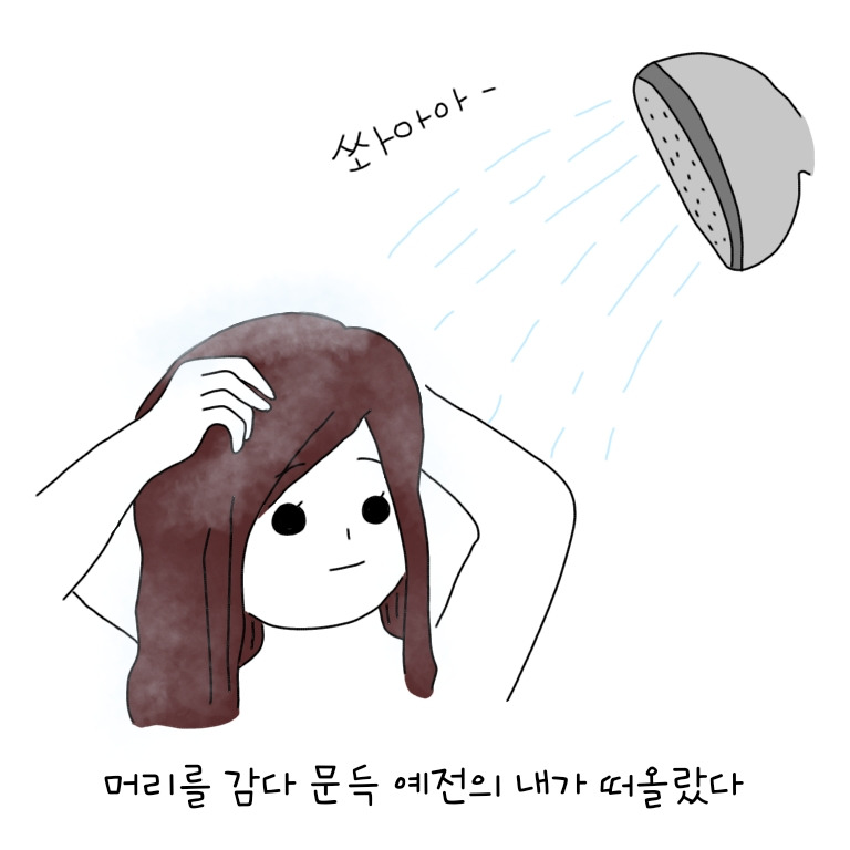 화장실에서 편하게 머리를 감다가 문득 예전 모습이 생각났어요.