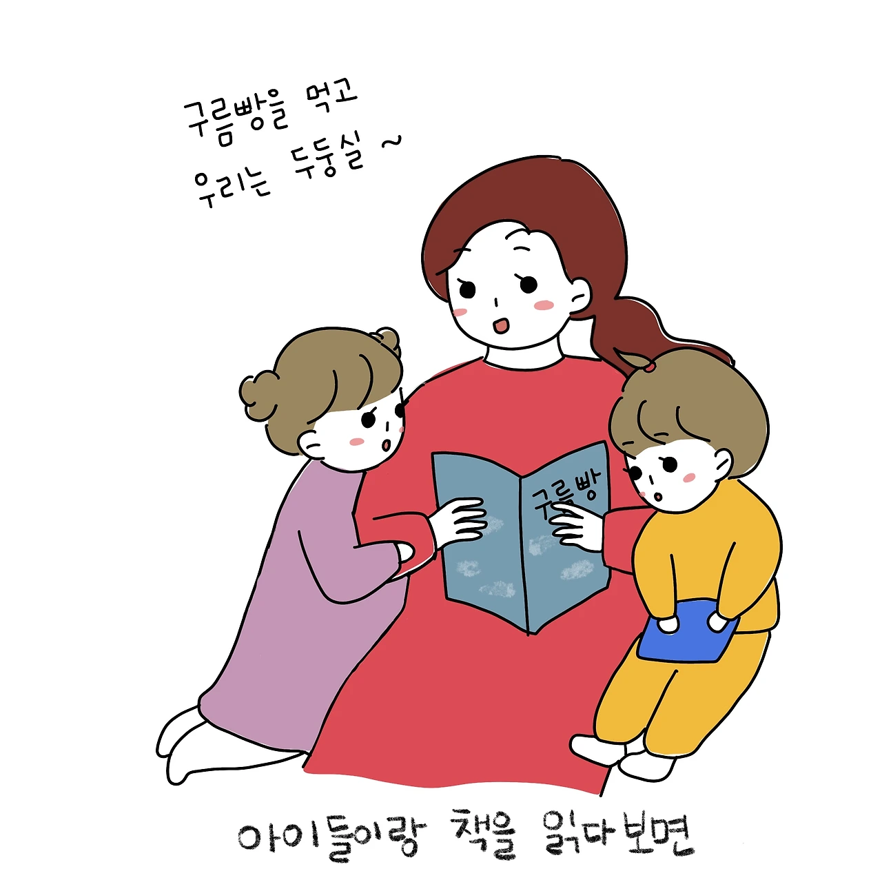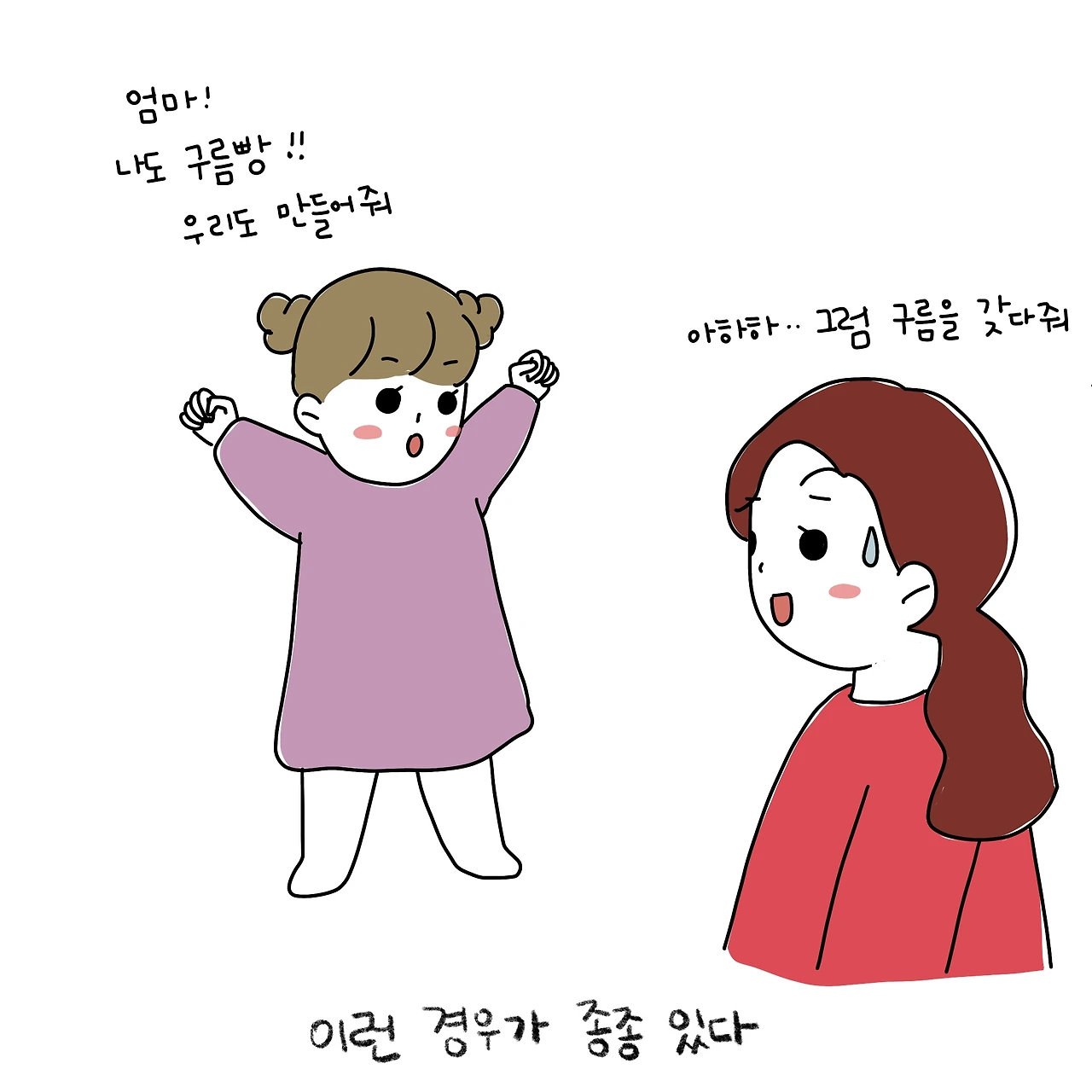 구름빵 책을 읽고 갑자기 구름빵 만들어 먹자는 이콩이! 그려서 주니 진짜 구름빵 달라고 생떼가 시작됐다. 엉뚱한 요청에는 엉뚱한 대답이 효과적일 때가 많다.
