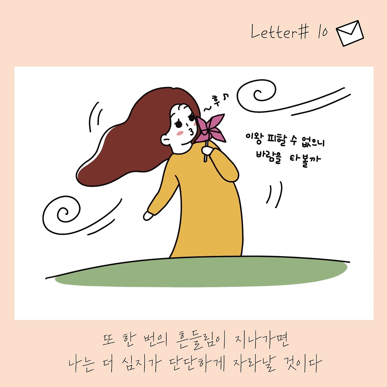 축축이 봄비를 맞아야만 꽃은 활짝 피우듯, 내리는 비를 피하지 않으려 한다.