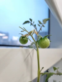 힘겹게 자라난 토마토 줄기에는 작고 단단한 열매들이 맺히기 시작했다.