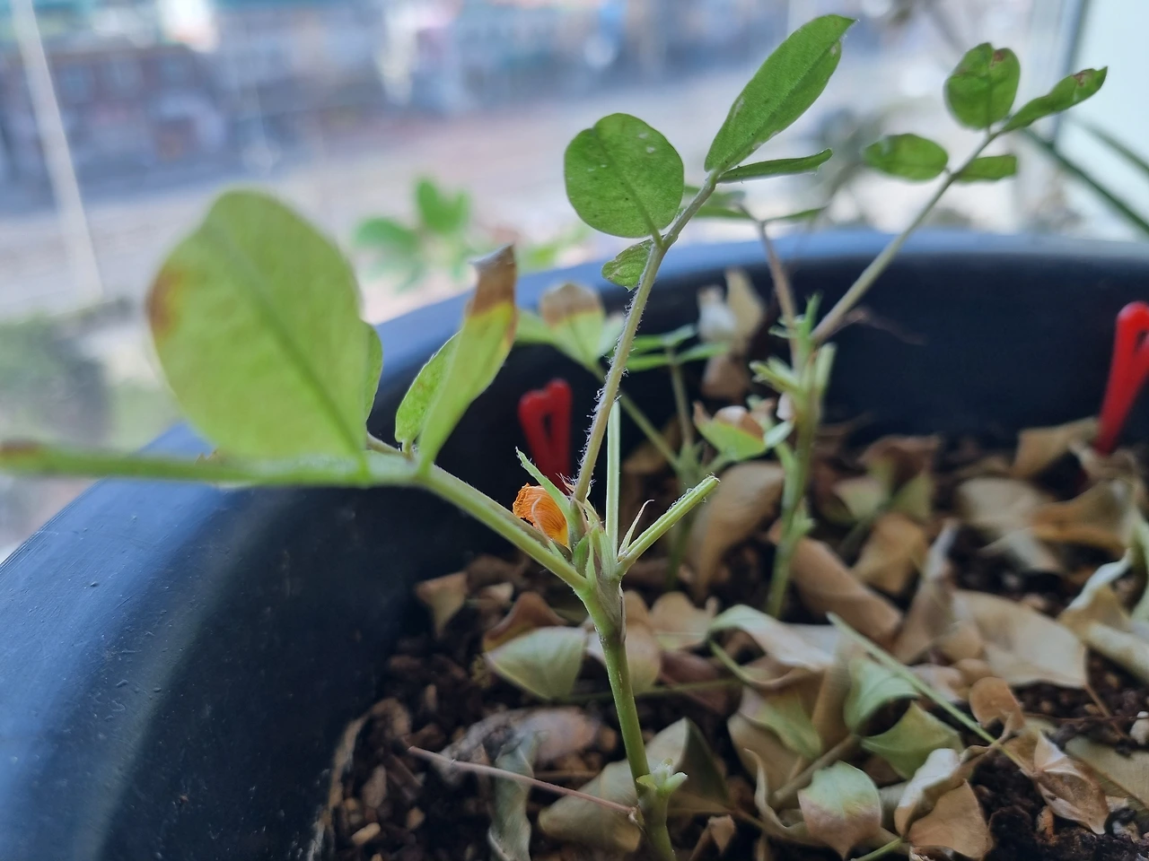 퇴비 삼아 화분에 땅콩 껍질을 넣고 흙을 덮었더니,