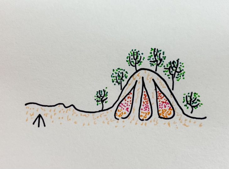 시끄러운 소리가 끝이 없자 땅 안에서 작은 분노들이 말랑말랑 움직이기 시작했어요. 땅은 살랑이는 동그란 분노를 동물들에게 보여주기 위해 가슴을 훅! 들이밀었어요. 땅이 가슴을 들이민 곳은 유난히 올록볼록했는데 동물들은 그것을 산이라 불렀어요. 산은 동물들이 사는 곳을 나눴고, 시끄러운 싸움은 줄어들었어요. 작은 분노가 예쁘게 꺼내놓은 산은 보기 좋았어요.
