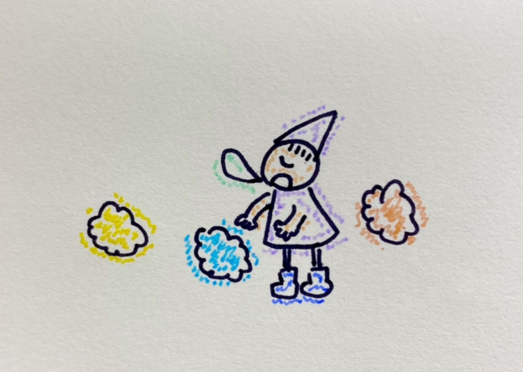 요정들이 만든 마음은 모양이 다양했어요. 그리고 다양한 모양만큼 다양한 마음이 생겨났죠. 동그라미는 행복, 세모는 부끄러움, 빗방울 무늬는 슬픔, 네모는 혼란스러움, 화살표 모양은 분노를 담고 있었어요. 그 외에도 셀 수 없을 정도로 많은 마음들이 있었어요.