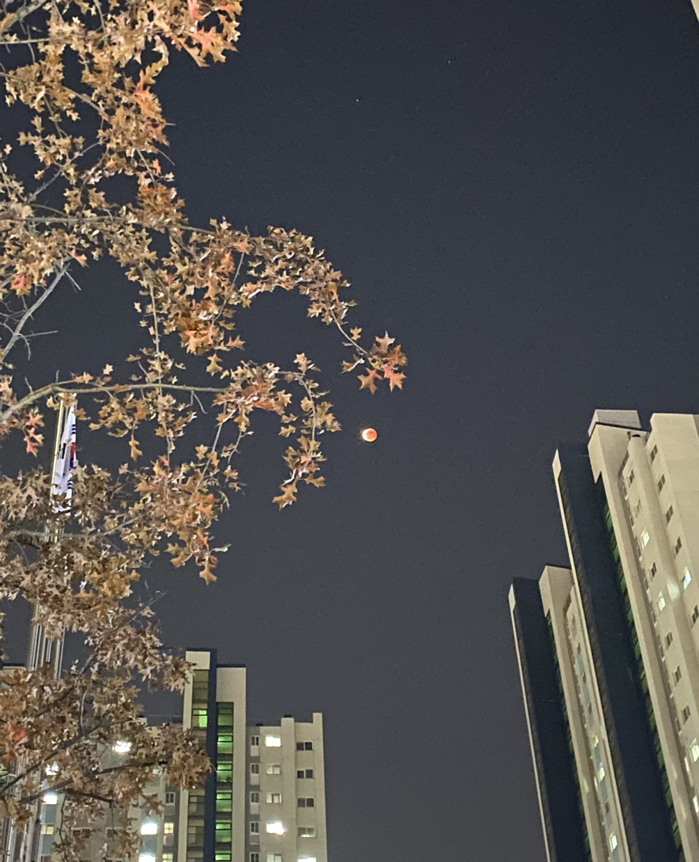 우리의 하루하루도 밝게 빛나는 보름달일 때가 있고, 그림자에 가려져 붉은 달일 때도 있다. 어떤 하루라도 누구랑 같이 있는지, 어떻게 보는지에 따라 이리 아름다울 수 있겠구나 싶었다. 우리의 아름다운 오늘을 만끽하시기를, 마음의 여유가 생기시기를, 더 건강하고 행복하기를 기도한 날 밤.