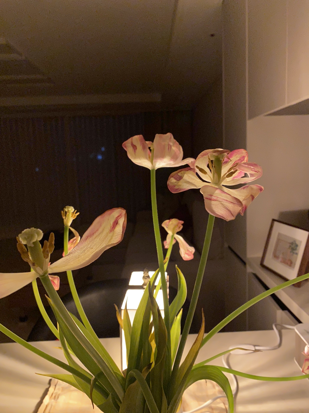 시간이 지나 몇 개의 잎은 떨어지고, 몇 개의 잎은 남았다. 어디에 있든 그렇게 모든 잎이 시들어갔다. 이제는 전혀 튤립 같지 않은데, 그런데도 너는 여전히 시적이다. 아름답게 나이를 든다는 것은 결국 시각의 문제일 것 같다. 어떤 순간에도 아름답게 보는 눈이 있기를 기도한다.