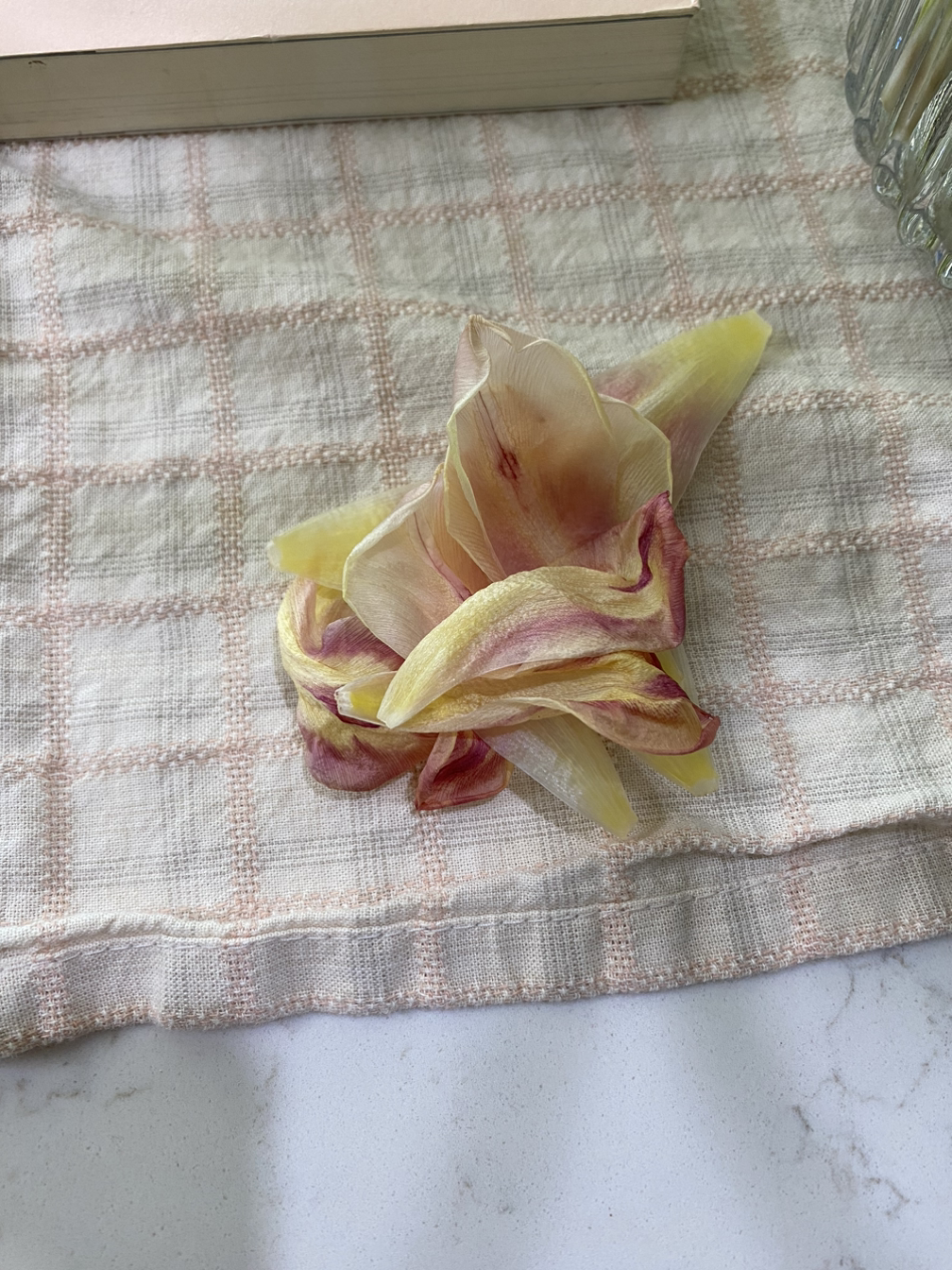 그 후 무심하게 튤립 앞을 지나가는 나날이 지속되다가 어느 날 저녁, 잎사귀가 얇고 투명해져 가는 모습을 발견했다. 꽃잎의 끝부분에 붉은색이 몰리고 그 밖의 부분은 더 연해진 것이다. 힘이 사라져 끝 부분이 동그랗게 바깥쪽으로 말려지기 시작했다. 전에 리즈 시절의 튤립을 봤을 때 '이 순간보다 더 아름다울 수 있을까?' 했는데, 나는 탄탄함이 사라지고 힘이 없어진 튤립에 오히려 매료되었다.