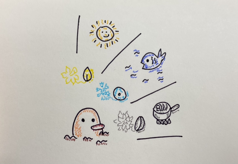 게으른 코알라였지만 사랑하는 씨앗들을 위해 꼭 하루에 한 번은 나무에서 내려와 흙을 손으로 톡톡 두드렸어요. 코알라의 따뜻한 마음을 해가 보았어요. 해는 씨앗을 심은 자리에 따뜻한 빛을 선물해줬어요.