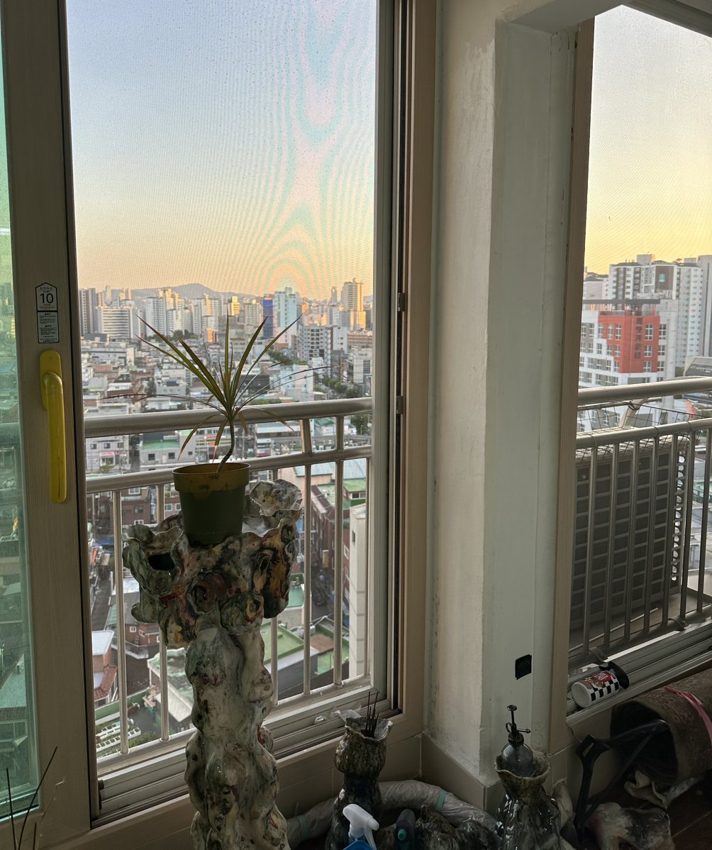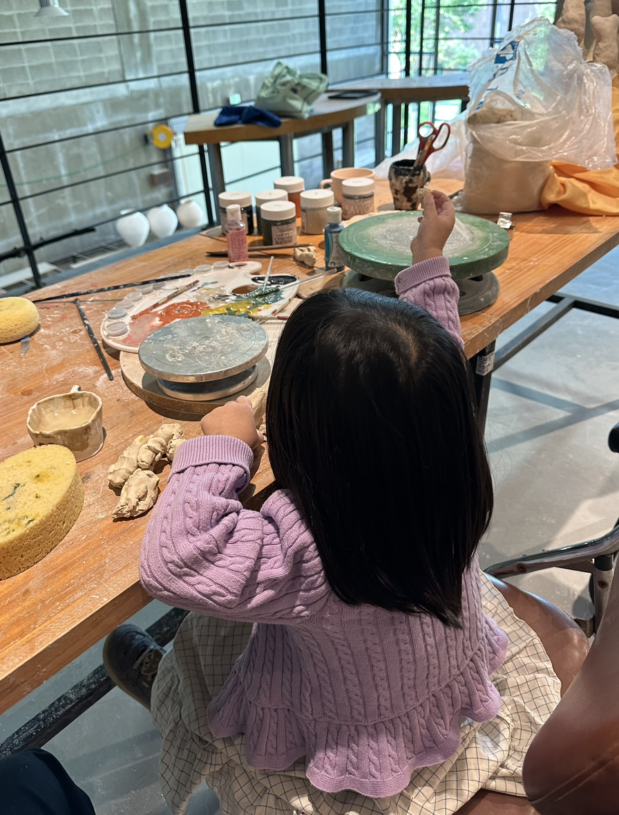 오늘은 동생의 공간에서 도예 체험을 하기로 했다. 같은 일을 반복하는 장인의 길에 쉼을 줄 수 없음이 신경 쓰였으나, 동생이 사랑하는 작업의 일부를 해보는 것만으로 조금이라도 더 동생의 하루를 이해할 기회인 것 같아 오케이!했다. 그런데 이런 곳에서 일한다니 머리가 시원해질 것만 같다.