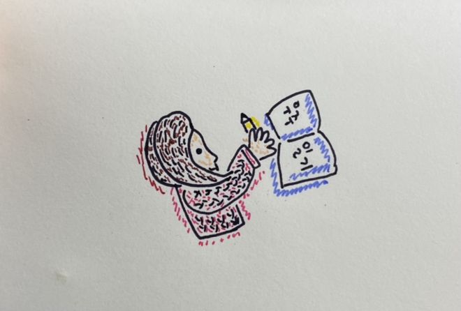 일기장 위의 글자들은 우주에게 익숙해졌고, 정이 들기 시작했어요. 글자들은 우주의 따뜻한 손가락이 닿는 느낌, 꾹꾹 눌러써서 들어가는 종이의 곡선, 사각사각 연필 깎는 소리 같은 것들을 좋아했죠.
