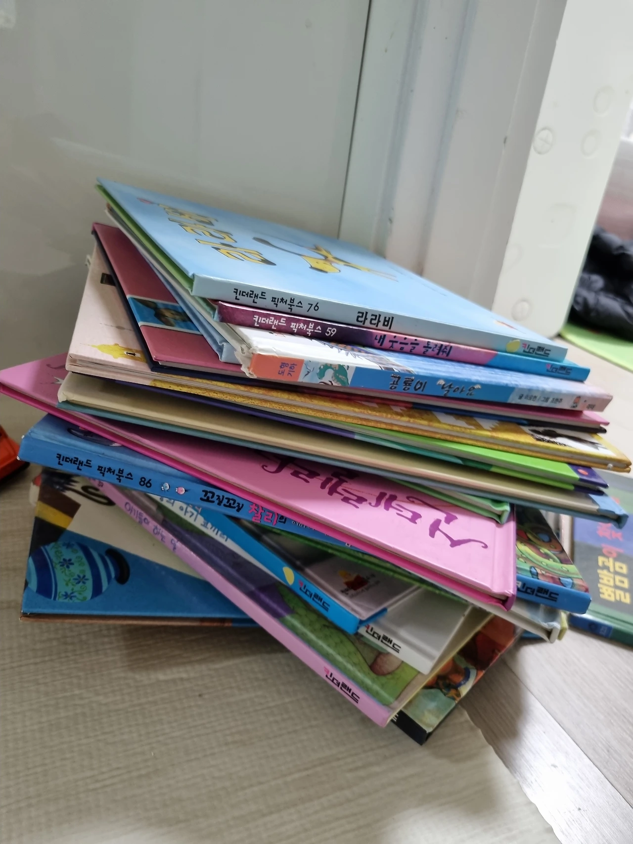 보물들을 찾았다!소독 티슈와 휴지를 들고와서 한 권 마다 정성스레 닦는다. 책을 열어보고 그림을 본다. 그리고는 잠시 멈춰 생각에 잠긴다.
