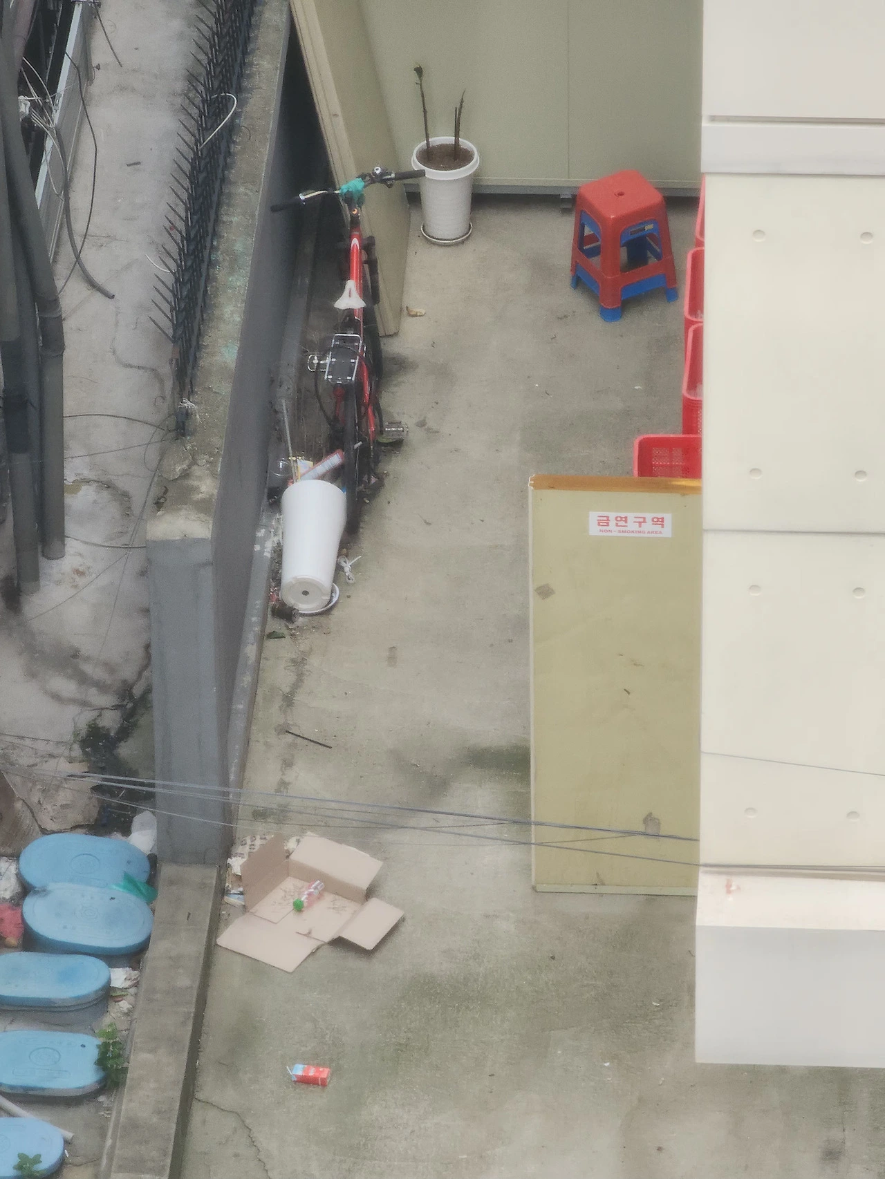 덥다며 모든 것을 바깥으로 내다 버린다.