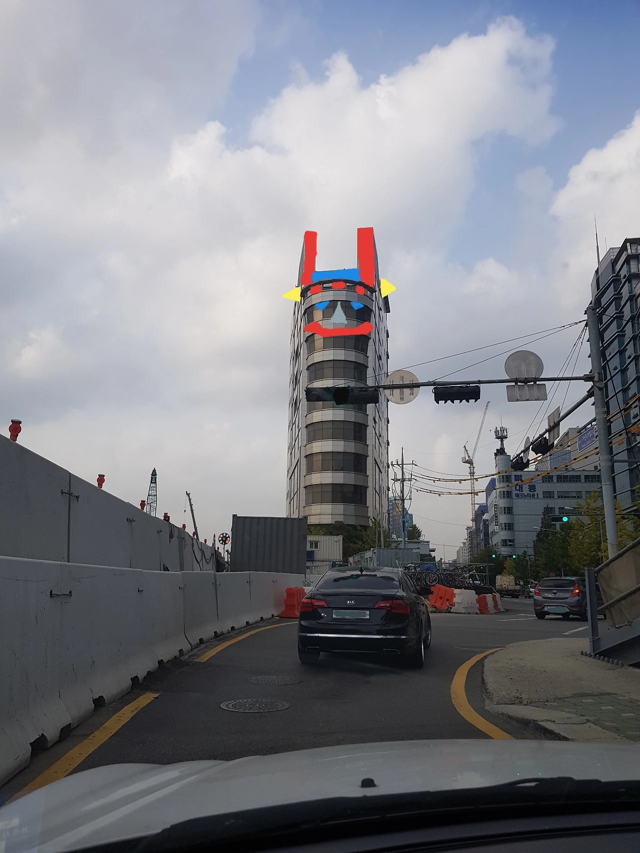 저는 건물을 보는 순간 어릴 적 본 만화영화의 로보트태권브이가 떠올랐습니다.