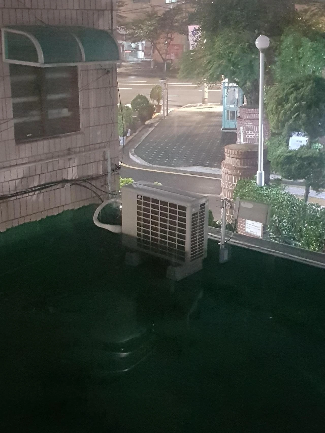 옆집 지붕에 에어컨실외기가 그날따라 제 시선을 사로잡았습니다.