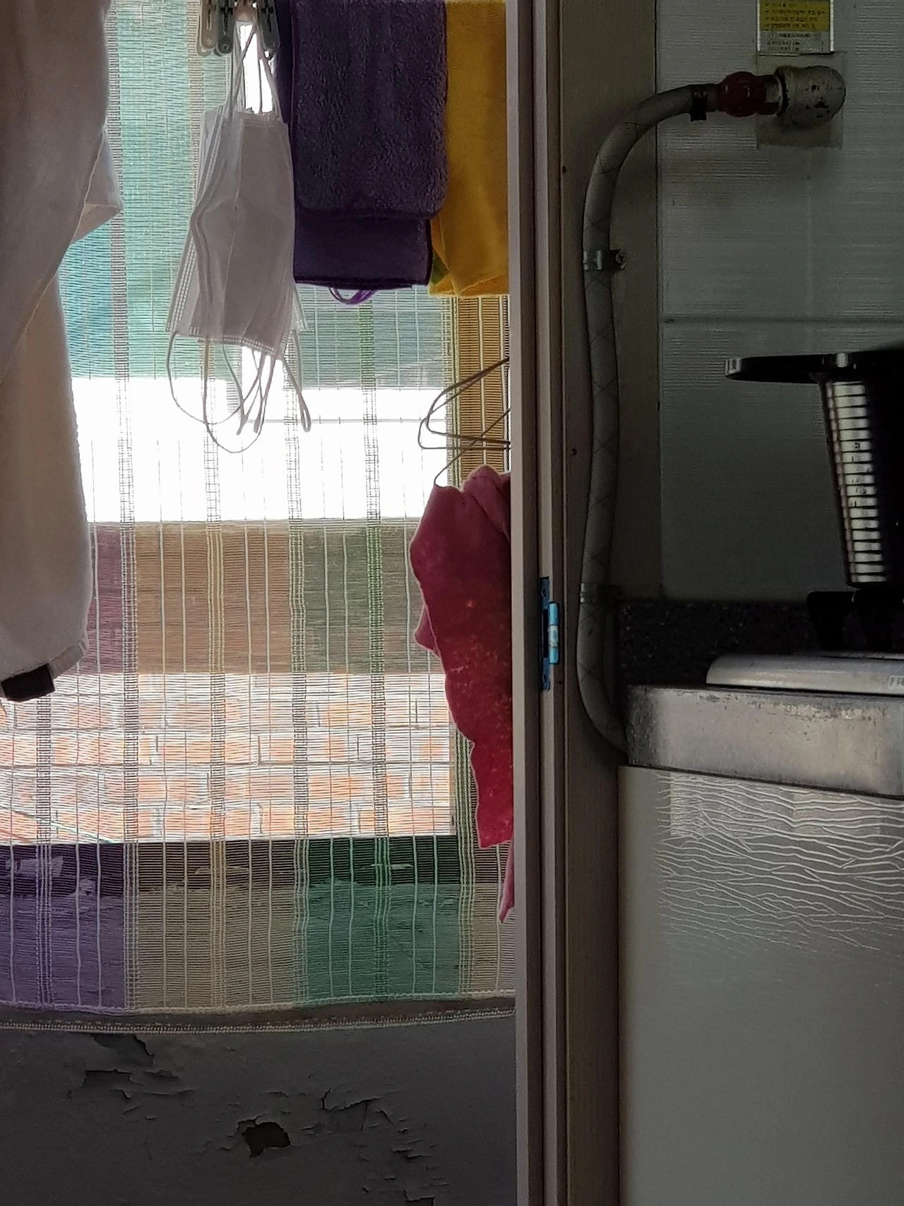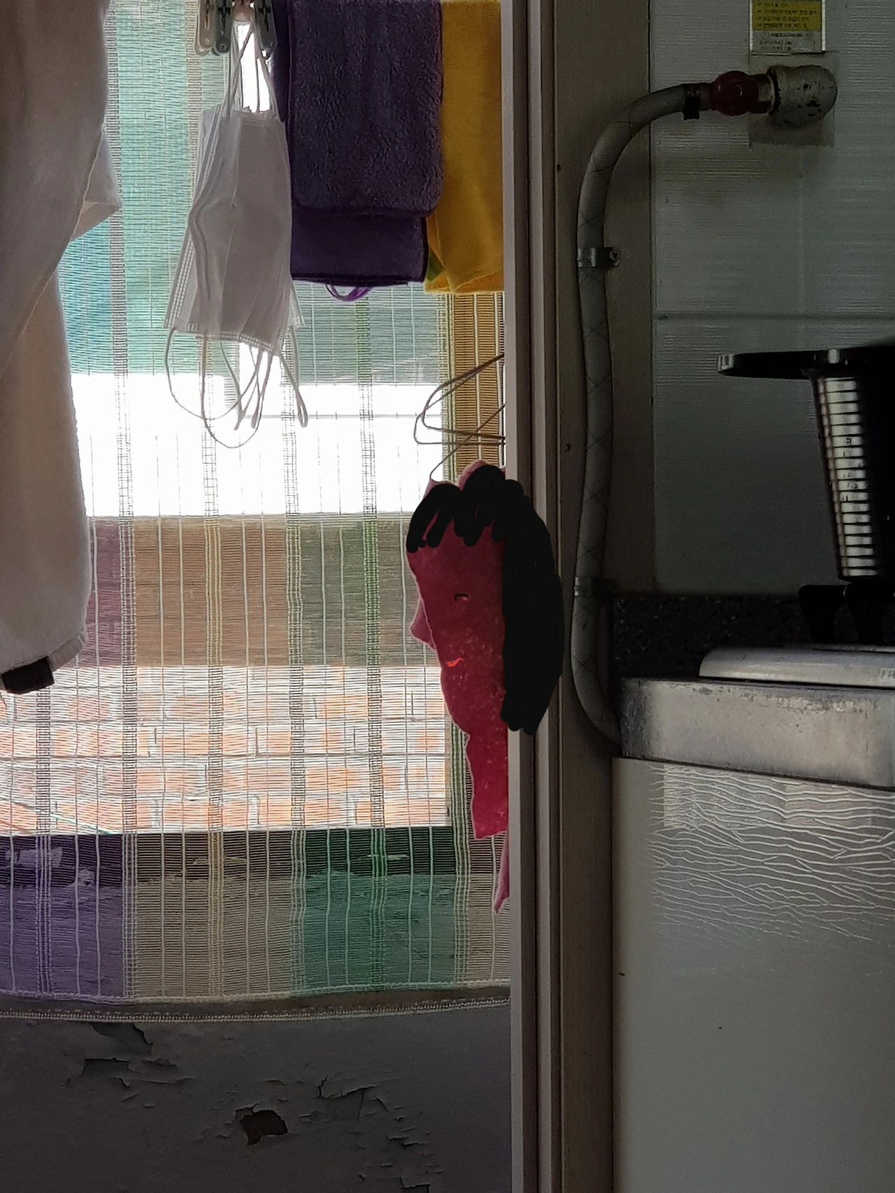 원본 사진의 행주를 보면서 베란다에서 일을 끝내고 쉬고 있는 아내의 모습이 생각났습니다. 한 끼의 식사를 위해 준비하고 설거지를 하고 행주를 짜서 널어놓고 비로소 잠시 쉴 수 있는,,, 지금 이 시간에 아내의 모습을 본 것입니다. 웃고 있지만 힘들었을 것입니다. 또다시 다음 식사를 준비해야 하지만 지금의 휴식만큼은 평온했으면 합니다♡