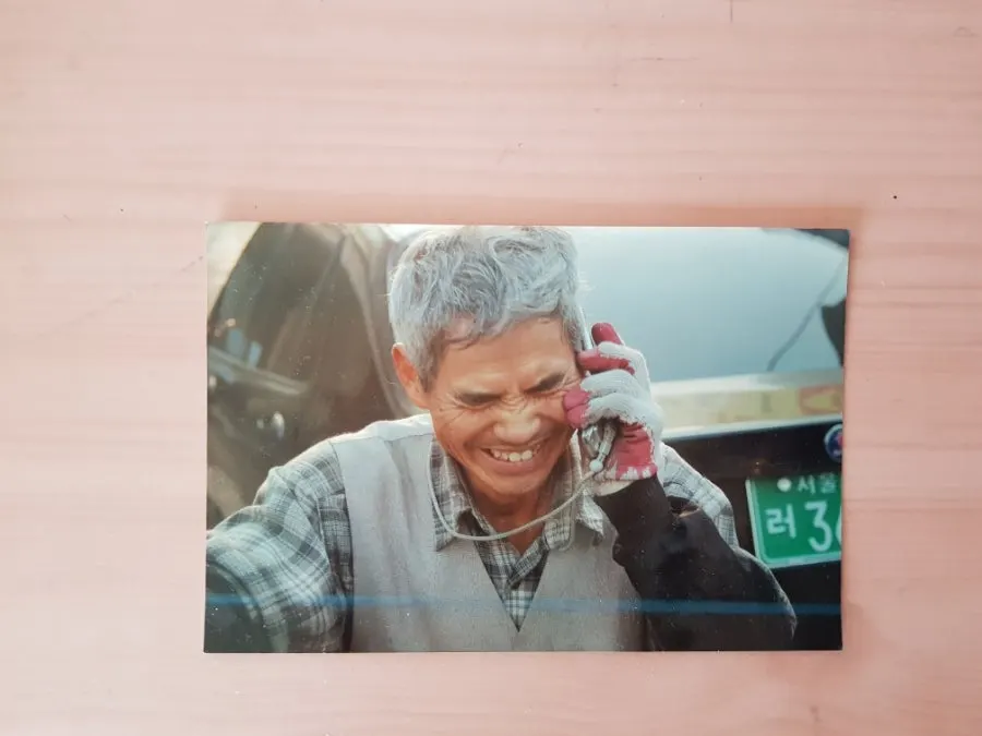 (옛날에 폐지 주우실 때 누군가 길에서 찍어 주었다는 사진, 핸드폰 통화하는 우리 아버지 생전 모습)