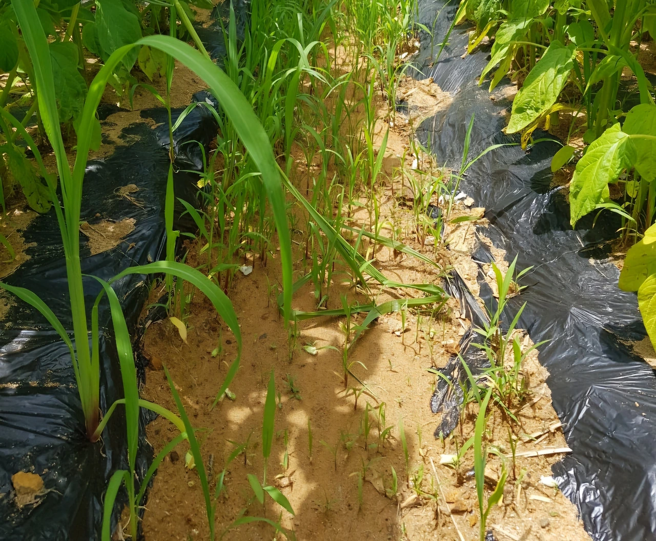 *두둑 위에 씌워 놓은 까만 비닐의 틈을 뚫고 나오는 강인함을 배워라
