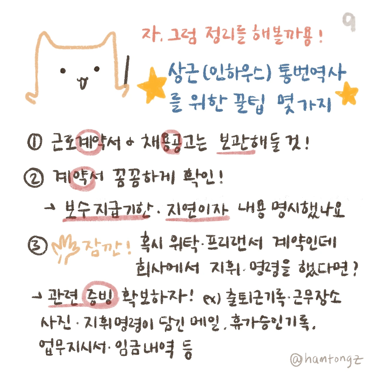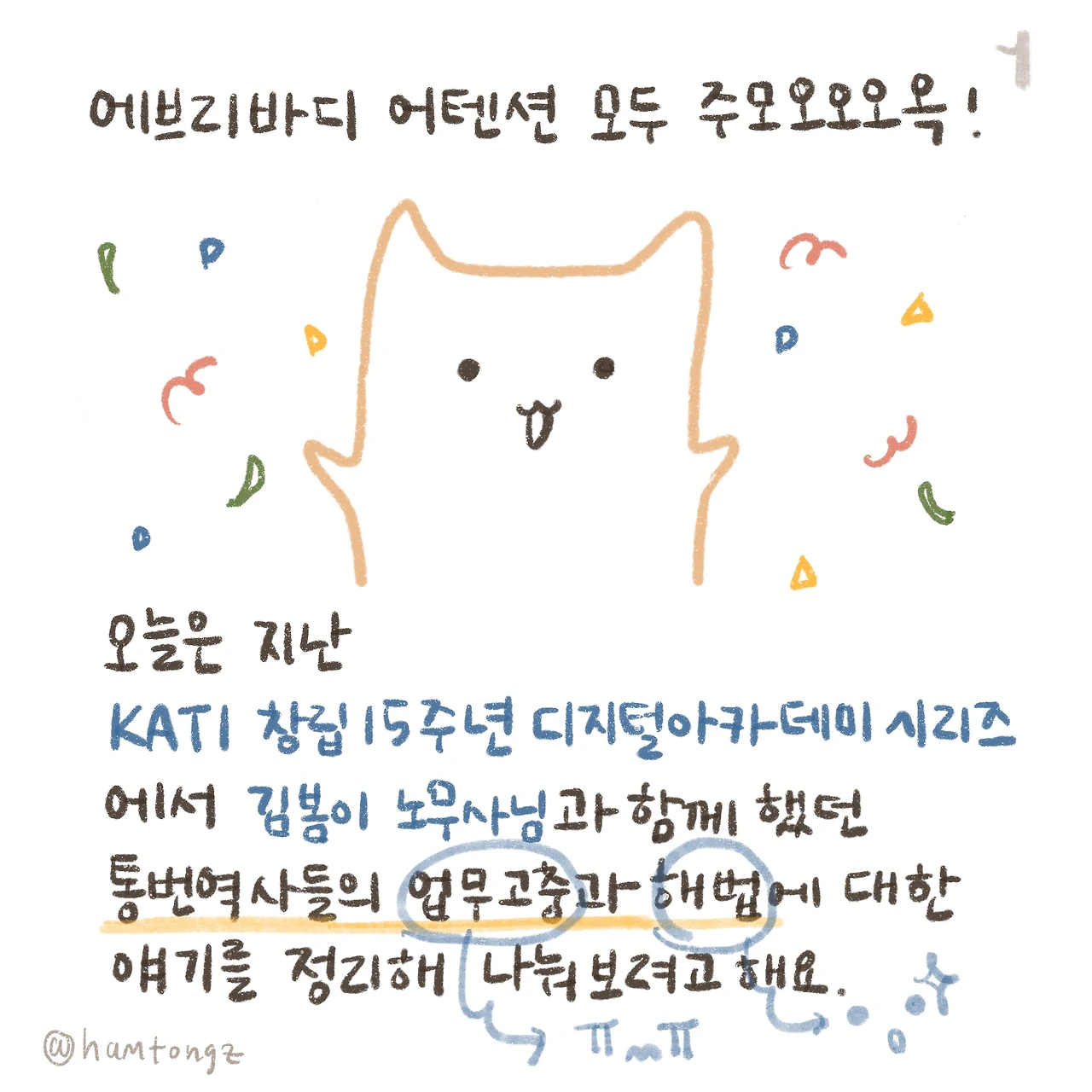이번 편은 한국통번역사학회(KATI)에서 작년 진행한 디지털 아카데미 중 3번째 특강인 #노무지식 세미나를 바탕으로 그린 툰인데요,