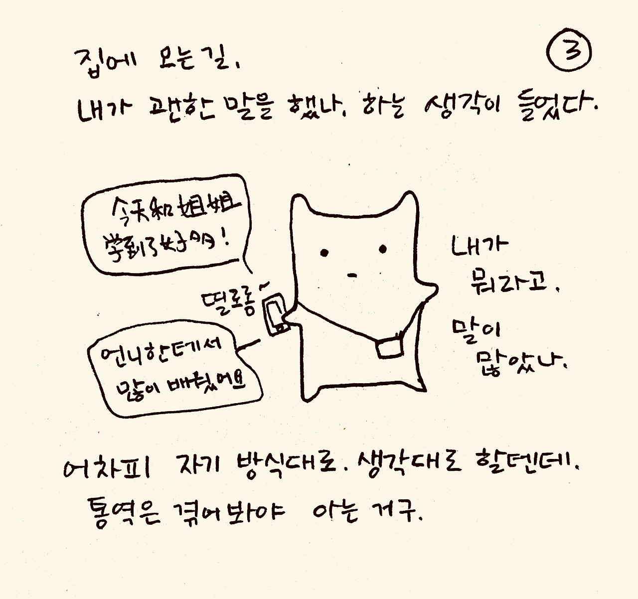 저는 햄스터 통역사입니다. 햄스터 말을 통역하는 건 아니고, 한국어와 중국어를 통역해요. 그럼에도 제가 햄통인 이유는, (이건 비밀인데) 제가 햄스터이기 때문이에요.