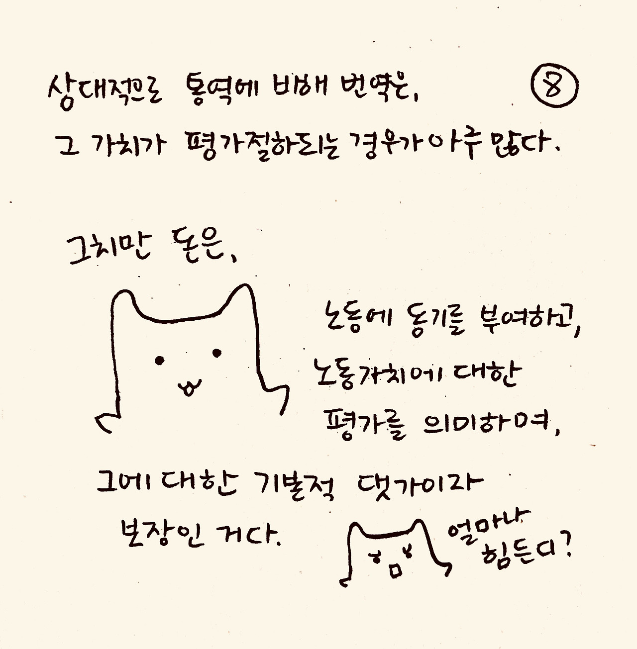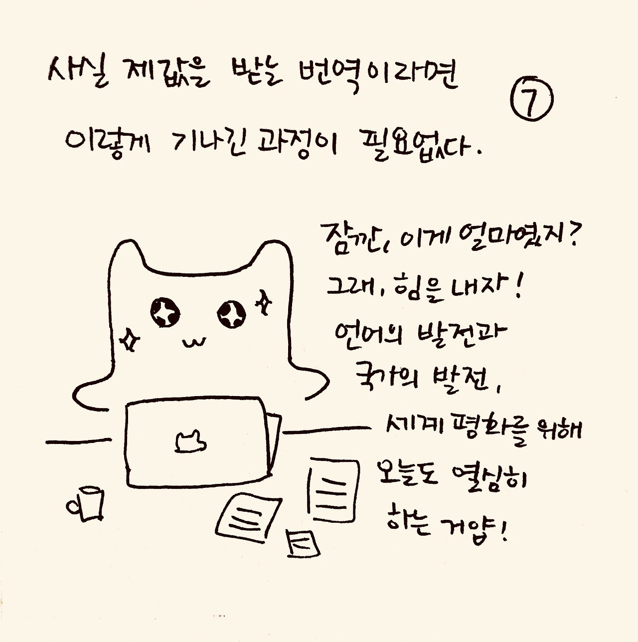 내가 가지고 있는 기술을 써서 돈을 벌 수 있다는 것. 사실 굉장히 감사하고 좋은 일인데, 그 가치를 본인이 어떻게 매길지, 그 가치에 상당하지 않는 댓가를 받을 때 일을 선택할지 말지, 낮은 댓가라도 시간이 나서 일을 받는다면 이게 긍정적인지 부정적인지, 이런 걸 결정하는 건 통번역을 시작한 뒤 계속 고민하는 문제입니다.