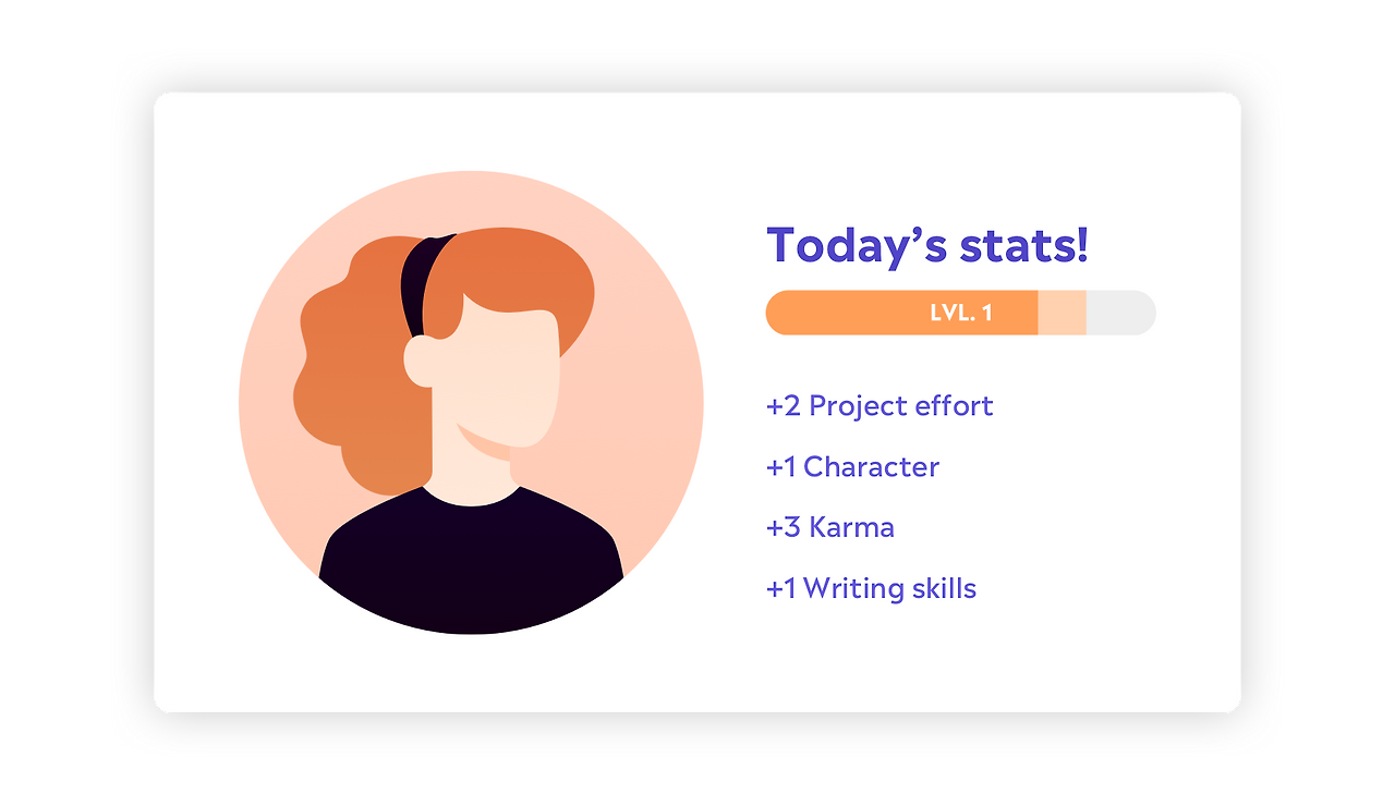 "오늘 밤 집으로 장시간 운전했으니까 참을성 +1" 혹은 "회의에서 아이디어 하나를 끊임없이 어필했으니까 근성 +1"을 줄 수 있다. 유저가 "아바타"에 일정량의 +1을 채우면, 레벨이 오르면서 그의 행위에 대한 즉각적인 효과를 느낄 것이다.