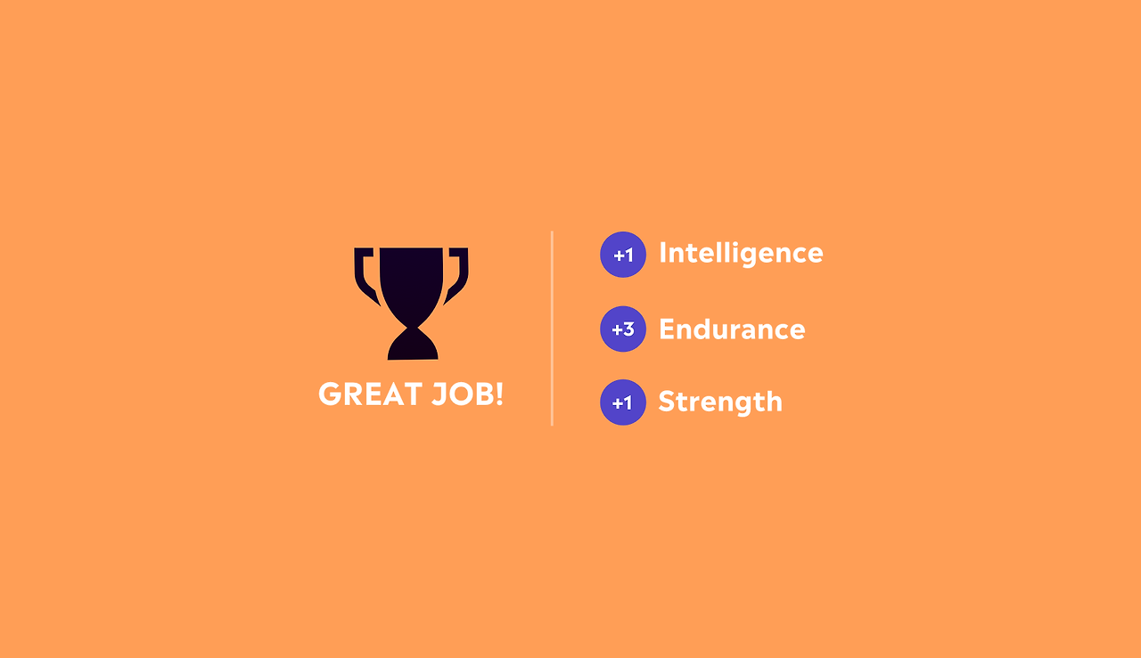 이때 어떻게 유저에게 보상하고 실시간 피드백을 줄 수 있을까? 유저는 매 할 일을 마칠 때마다 플래시 애니메이션으로(의지 +1, 힘 +1, 건강 +1과 같은) 보너스 능력치를 받을 수 있을 것이다. 그러고 나선 이 포인트들이 유저의 레벨(성장)에 합산되는 경험치로 변환될 수 있다.