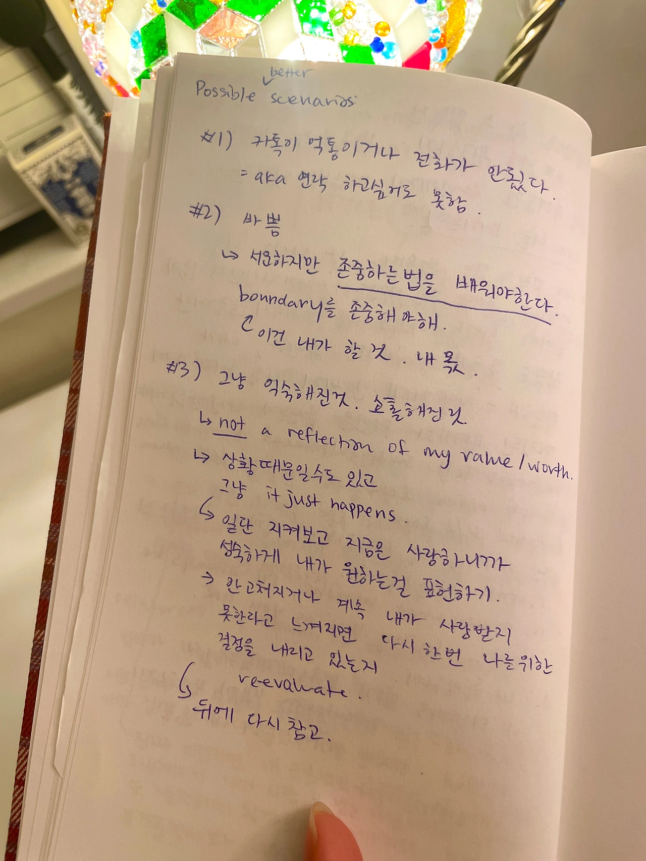 감정적인 것이라면 최악에서 최선의 시나리오를 모조리 구상하고 그 모든 상황들에서 난 괜찮을 것이란 당부를 해준다.