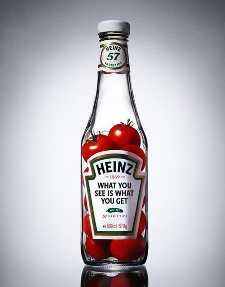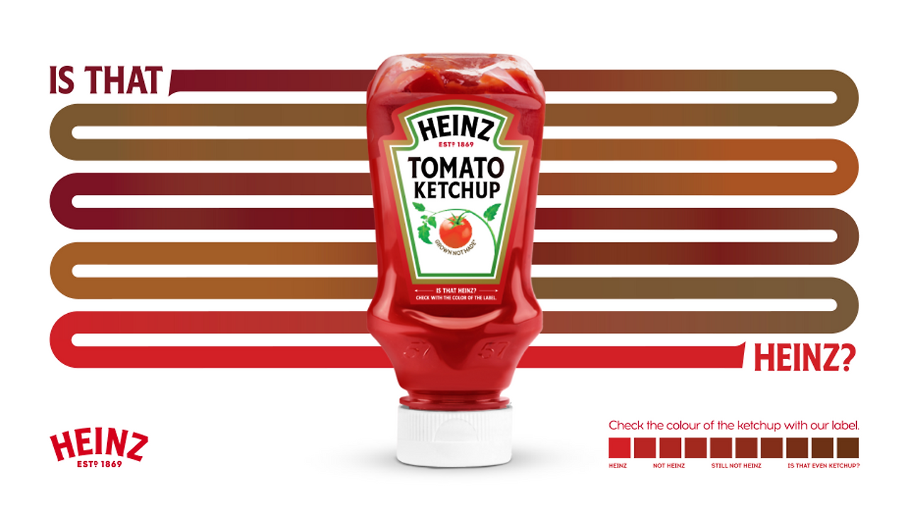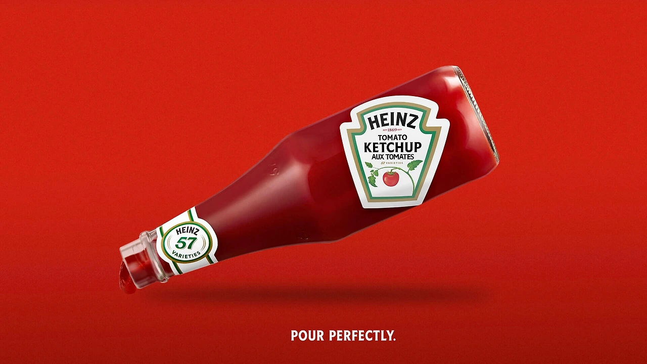 하인즈는 1869년 작은 식품 회사에서 시작하여, 현재 전 세계 150개 국에서 1, 2등 제품군을 보유하고 있는 글로벌 브랜드로 성장했어요. 2015년 하인즈와 크래프트 푸즈의 합병으로 세계에서 5번째로 큰 식음료 회사가 되었습니다. 하인즈에서 가장 유명한 제품은 단연 케첩인데요, 하인즈 케첩은 달콤하고 즙이 풍부한, 빨갛게 익은 토마토만을 사용하는 것이 특징입니다. 하인즈는 "깊고 진한 토마토맛"이라는 장점을 "하인즈 케첩 = 토마토"라는 아이디어로 변환시켰고, 토마토를 사용한 직관적인 비주얼로 재탄생시켰습니다.