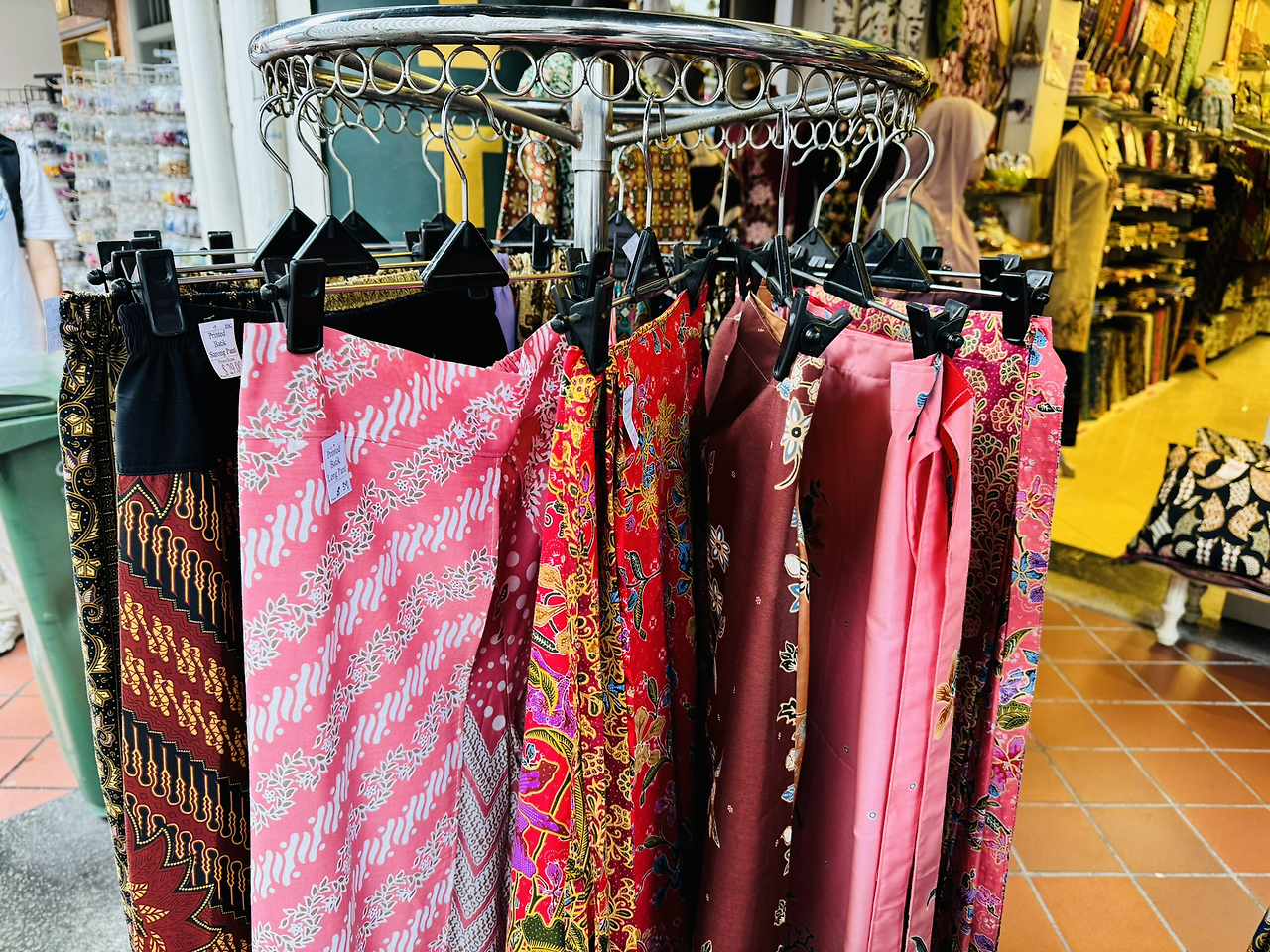Toko Aljunied는 케바야와 사롱 등 전통 말레이 의상을 판매하는 곳으로, 1940년에 그 역사가 시작되었습니다. 이곳은 아랍 스트리트의 상점들 사이에 아늑하게 자리 잡고 있어요. 케바야는 블라우스 같은 상의이고, 사롱은 허리에 두르는 긴 원단으로 이루어져 있습니다. 이곳의 가장 큰 매력 중 하나는 어디서든 똑같은 디자인을 찾을 수 없다는 점이에요. 난초, 국화, 연꽃 등이 수놓아진 케바야 원단과 복잡한 소용돌이 무늬나 정교한 다이아몬드 무늬로 장식된 바틱 디자인의 사롱들이 시선을 사로잡습니다.