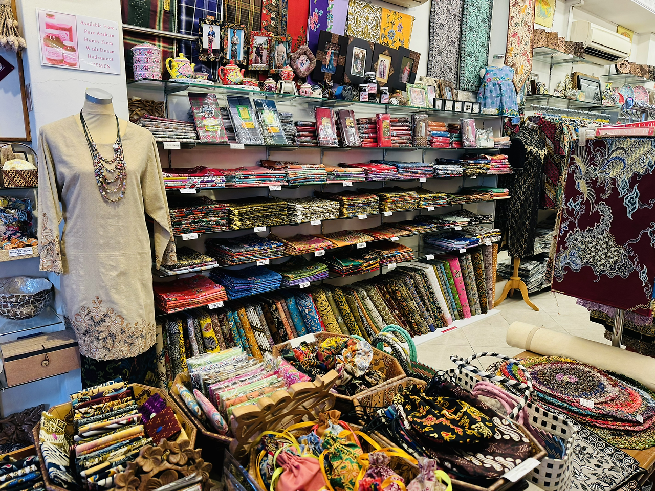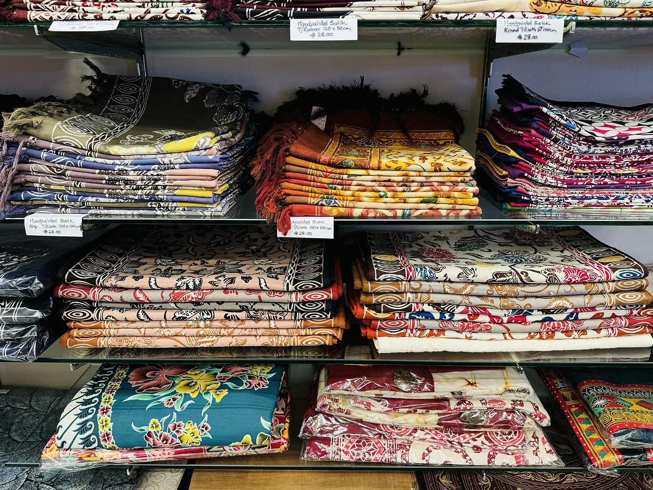 가게 내부에 들어서면, 면과 실크 원단으로 가득 찬 선반들이 손님을 맞이해요. Toko Aljunied는 수년에 걸쳐 명성을 쌓아왔으며, 싱가포르의 초대 총리 리콴유의 어머니도 이 가게의 단골이셨다고 해요. 페라나칸 출신이었던 그녀는 사롱 케바야를 자주 입었고, 많은 페라나칸인들이 Toko Aljunied의 고급스러운 소재와 아름다운 디자인을 신뢰했답니다. 그 시절에 사람들에게 어디서 좋은 바틱을 살 수 있냐고 물으면, 대부분 Toko Aljunied를 추천했을 정도로 인기가 많았어요.