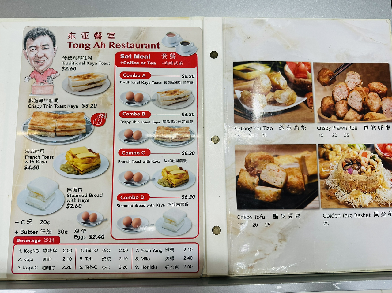 이곳은 전통적인 싱가포르식 아침 식사로 유명하며, 네 가지 콤보 세트 중 하나를 선택할 수 있어요. 가장 인기 있는 메뉴는 바삭하고 얇은 'Crispy Thin Toast Kaya'입니다.