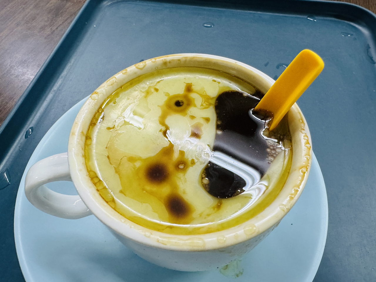 카야 토스트와 함께 유명한 것이 바로 버터커피인데요. 여전히 1920년대 스타일로 전통적인 방식으로 커피콩을 볶고 필터를 사용해 커피를 내린다고 해요. 커피의 강한 맛을 버터의 부드러움이 잡아주는데, 제 입맛에는 조금 강하고 약간 느끼한 느낌이었어요. 그렇지만, 이곳이 바로 버터커피가 탄생한 곳이라고 하니 한 번쯤 시도해 보시는 것도 좋을 것 같아요.