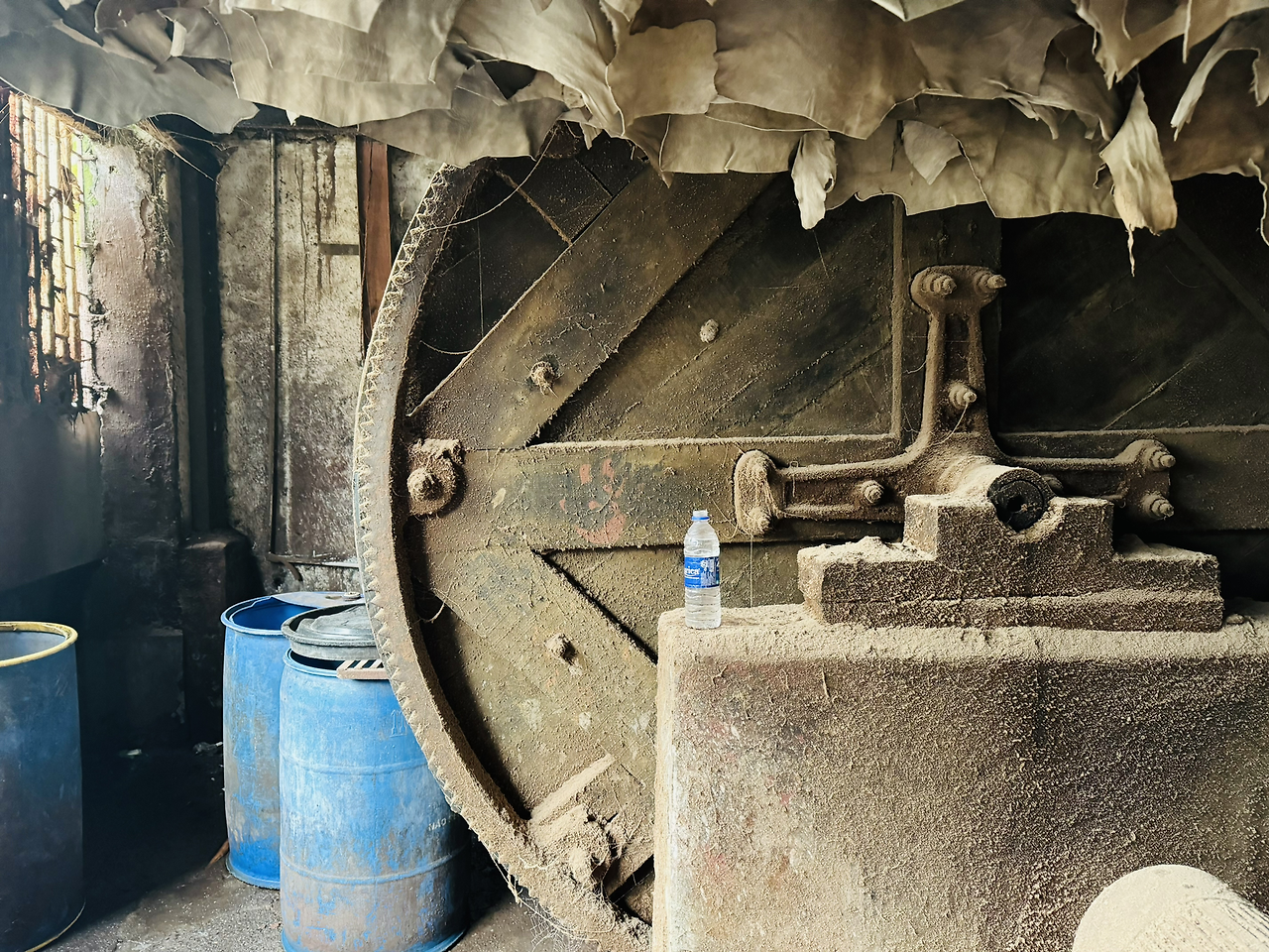 가죽을 만드는 작업은 꽤 복잡합니다. 먼저 동물로부터 원료 가죽을 얻은 후, 가죽을 보존하기 위해 소금을 치는 작업을 합니다. 이후, 워싱머신을 이용해서 소금과, 먼지, 불순물을 제거해요. 이곳에서는 60년 된 워싱 머신을 볼 수 있었는데요, 한 번에 500개 가죽을 세척할 수 있다고 합니다.