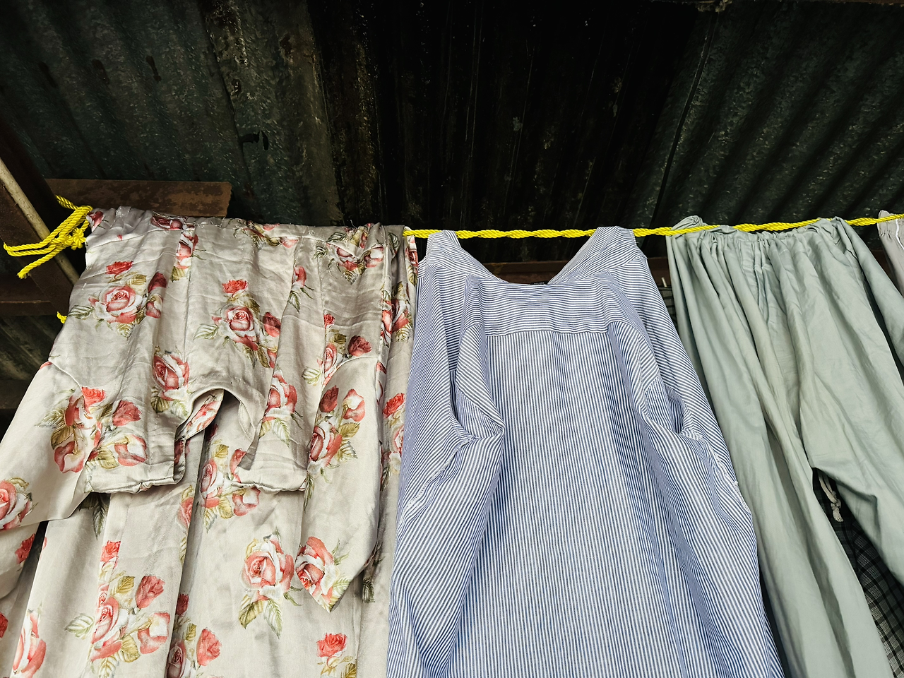 이곳에서는 빨래집게를 하나도 찾아볼 수 없었는데요. 빨랫줄을 꼬아서 옷을 고정을 하고 있었어요.