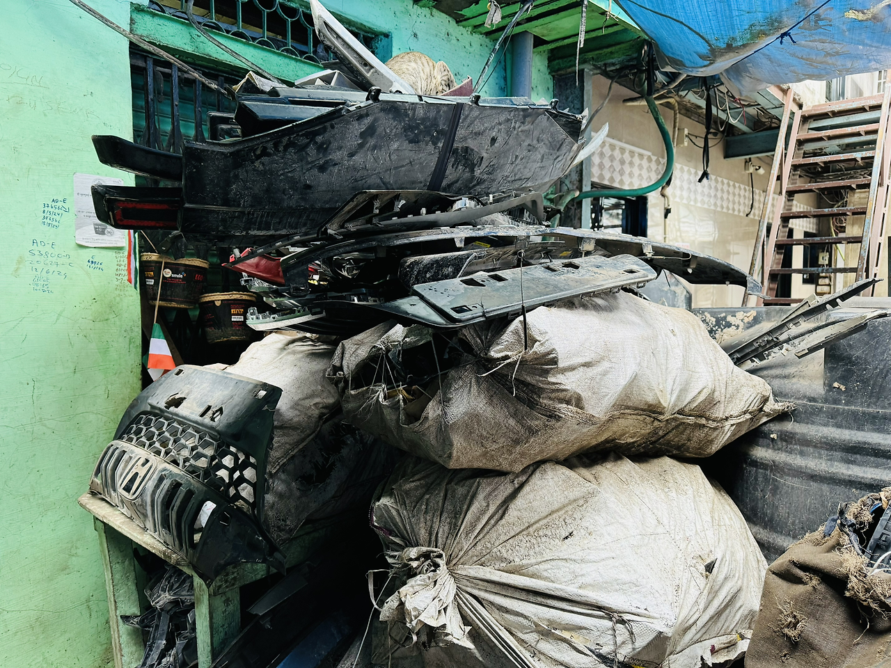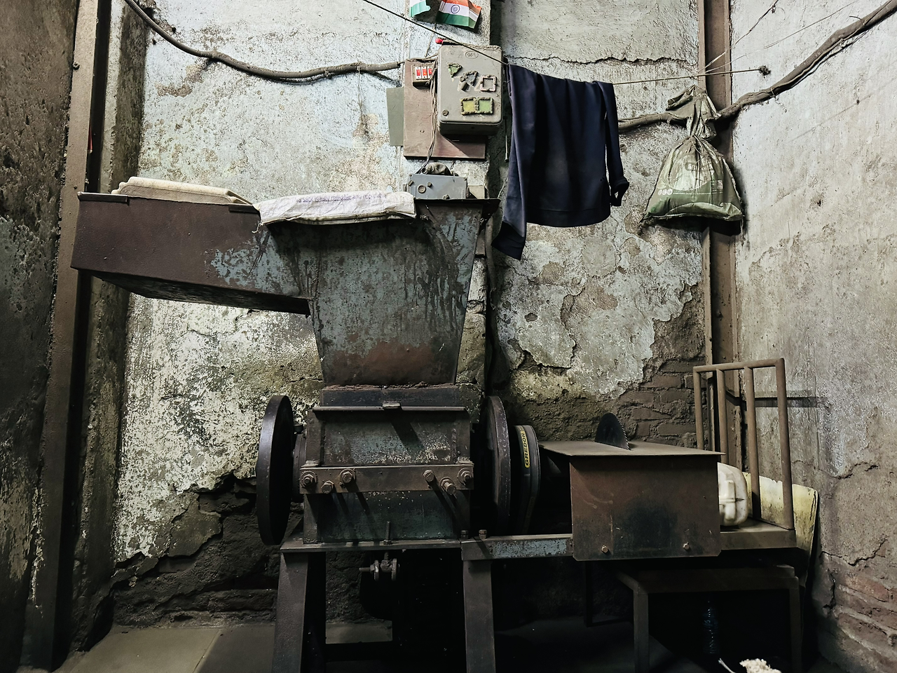 첫 번째로 방문한 곳은 플라스틱 재활용 시설입니다. 플라스틱을 모은 후에 퀄리티에 따라 손으로 하나하나 분류한다고 해요. 이후에는 그라인더로 작게 분쇄하고, 세척하고, 말리고, 녹인 후에 다시 용기나 의자 등으로 재가공된다고 합니다. 이곳에서 일하시는 분들은 하루에 300루피 (약 4,800원)을 번다고 해요. 많지는 않지만 오너가 숙식을 제공하기 때문에 돈을 모아서 가족들에게 보낼 수 있다고 합니다.