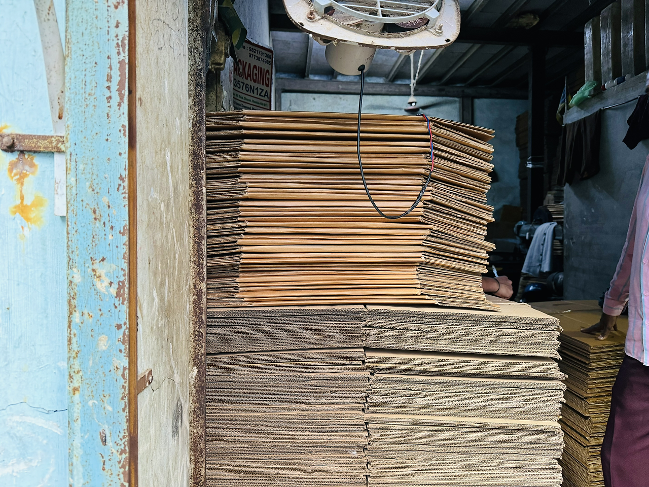 카드보드 상자는 귀퉁이를 잘라내고, 가장 외부와 내부 레이어를 제거한 후 새 종이를 덧대어 재활용합니다. 보통 3번까지 재활용이 가능하고, 그 이후에는 종이로 사용한다고 해요.