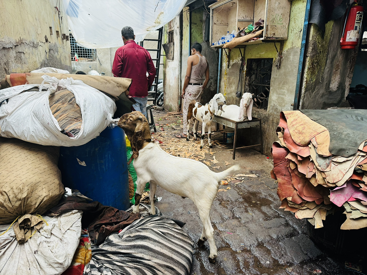 가죽을 만드는 곳도 방문했습니다. 반려동물로 키우고 있는 염소가 담뱃잎을 씹으며 반겨주었어요.