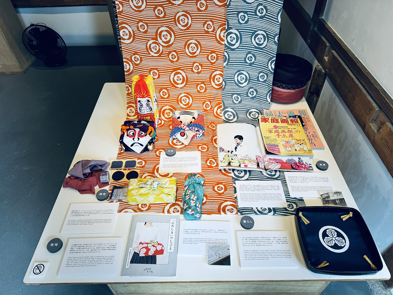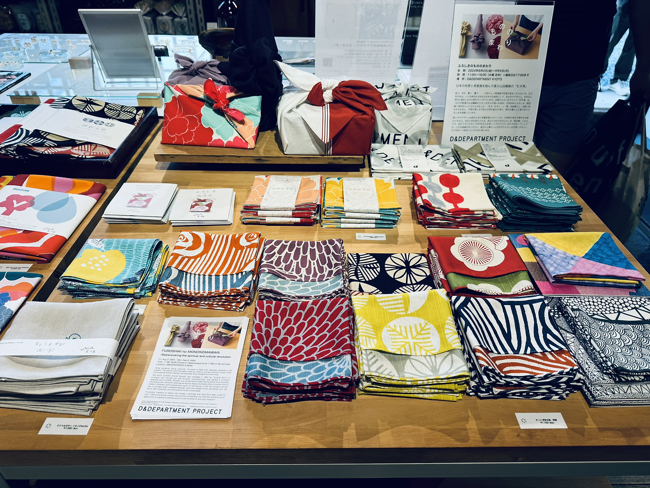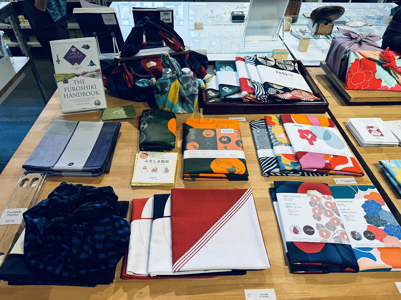 제가 방문했을 때는 후로시키가 테마였습니다. 후로시키는 일본적인 미감과 지혜가 담긴 정사각형 천으로 소중한 것을 보호하는 도구로 사용되어 왔어요. 최근에는 환경 문제에 대한 의식으로 인해 재사용이 가능한 포장지이자, 일본 고유의 문화로 주목받고 있습니다.